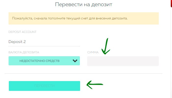 Шаг № 3 - перевод средств на депозит
