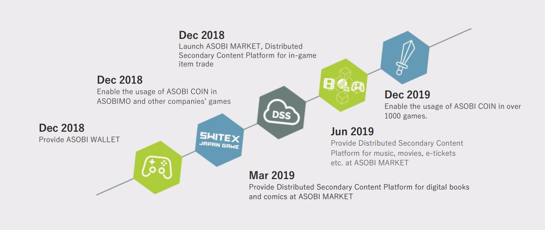 The DApps made by Asobimo provides a distributed secondary content platform with “Decentralized Security System” (DSS).