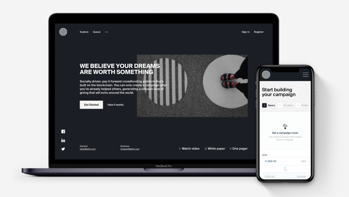 WHIRL is a socially driven, pay it forward crowdfunding platform that’s built on the blockchain. On WHIRL, you can only create a fundraising campaign after you’ve already contributed to others, inspiring a positive feedback loop of generosity. WHIRL is not a typical crowdfunding platform tacked onto the blockchain; it offers key improvements and innovations over legacy crowdfunding platforms.