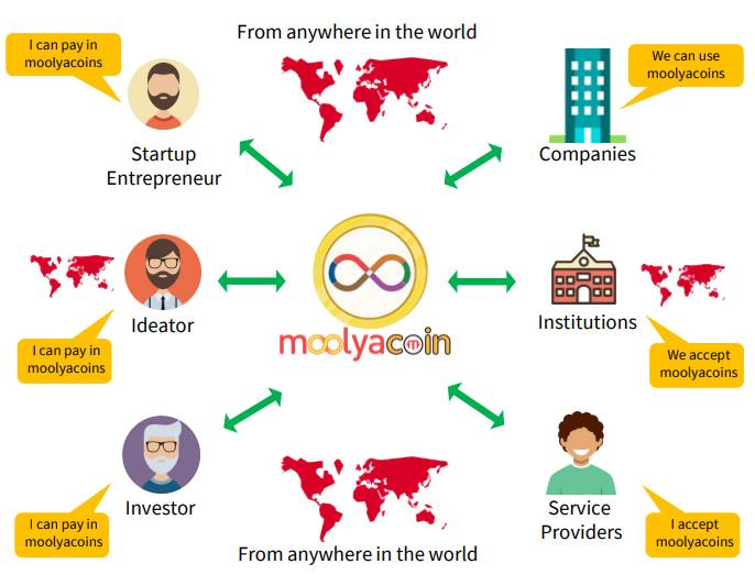 Moolya is a business-based ecosystem based on the block, designed to accommodate entrepreneurs, organizations and institutions that make up an ecosystem of cooperation to ensure a solid success. "global" is the "world's first Integrated Global Digital Start Ecosystem", which is the culmination of a network of interaction, a market and an on demand service platform for the ecosystem of the launching ecosystem. It consists of 6 vital communities: