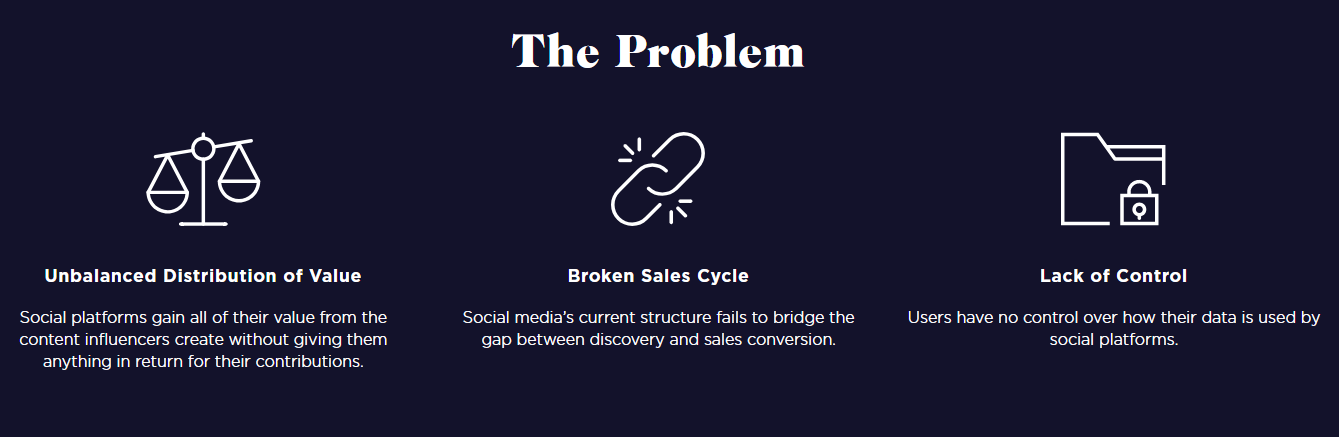 Несбалансированное распределение стоимости. Социальные платформы получают всю свою ценность от создателей контента, но посреднические организации требуют слишком высокие комиссионные за свои услуги - именно поэтому многие компании отказываются от того, чтобы размещать рекламу в социальных сетях;