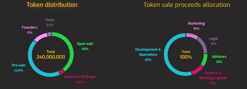 The distribution of tokens and funds is as follows: