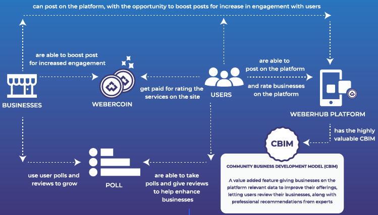 Webercoin connect business and customers on a blockchain based decentralized platform bringing transparency and secure for its users eliminating issues that occur in current traditional platforms. Since Webercoin fullfils the needs of both the businesses and users. Businesses can get maximum results connecting with customers in a very effective way of paying a lower fee for advertising. Webercoin allows businesses to maintain a strong relationship with customers while users can access a wide range of products and services on this platform. Also, users can be rewarded for rating and recommending the business.