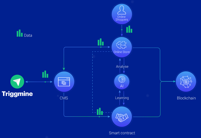 Triggmine is an intellligent system for email marketing automation based on blockchain technology and smart contracting. This service enables eCommerce entrepreneurs to run cost-effective email marketing campaigns using AI-based systems. Smart contract guarantee from the selection results. Blockchain technology ensures 100% safe use and benefits from Triggmine.