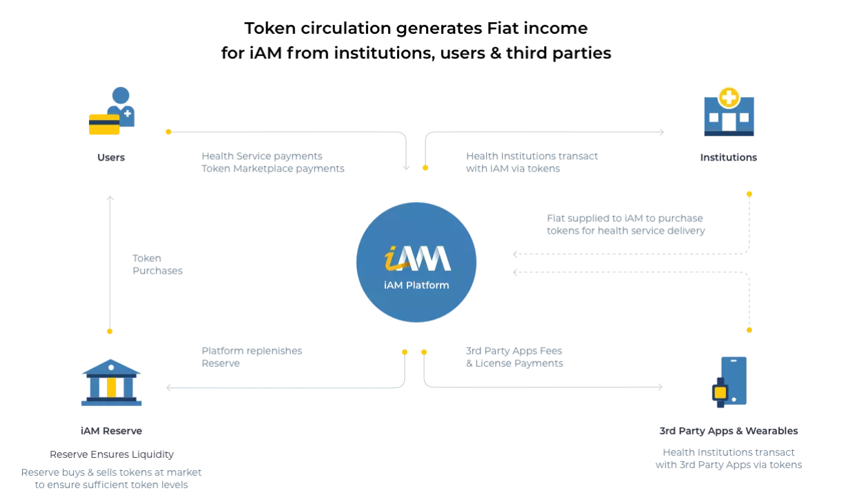 Участники решают платежи за медицинские услуги с помощью маркеров iAM. Эти транзакции создают маркерную экономику здравоохранения iAM.