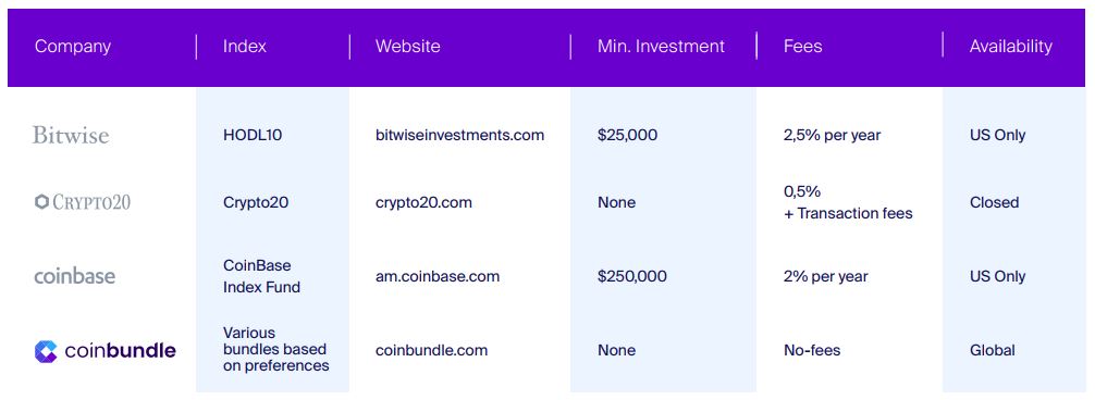 Since cryptocurrency is its’ infancy, cryptocurrency exchanges are relatively new and all of them provide investment options for single cryptocurrencies. In order to be able to use these exchanges for buying or selling a cryptocurrency, one needs to be an experienced trader. These exchanges are too complicated for an average investor to manage a portfolio. Bundled investment options on the other hand, are very few in number and only available to either accredited investors who need to invest huge amounts of money (25.000 or 250.000 USD as minimum) or offer only limited options (fixed distribution of funds through a single instrument).