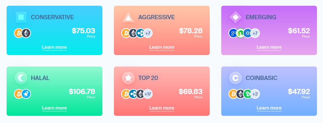 There are three bundles at the moment offered by CoinBundle which are created and optimized by the in-house financial team. Those are the Conservative 2 Bundle, the Aggressive 10 Bundle, the Emerging 10 Bundle, the Halal Bundle, Coinbasic Bundle and Topl 20 Bundle.