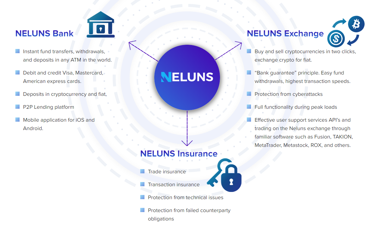 Neluns may be an inventive and monetary scheme, that contains a bank that works with fiats and cryptocurrency, a cryptocurrency exchange, Associate in Nursing an insurance association that's creating conditions for the emotional advancement of the cryptomarket, Associate in Nursing flow of latest people, and capital. Neluns objective is to merge the cryptocurrency advertise with the monetary one. moreover, Neluns can break down all obstructions and to influence a number of mammoth problems that ar accessible currently and keep the association of a human with cryptocurrency world. Neluns goes with a solution of current problems, conveyance creative plan, and advancements, similar to its explained within the below video.