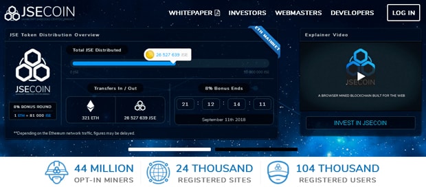 The JSEcoin platform has solutions of the problem of monetization a web of resources by a coin JSE mining!