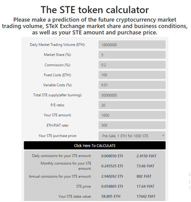 거래소 수익금 배당계산기(https://stex.exchange/stecalculator)