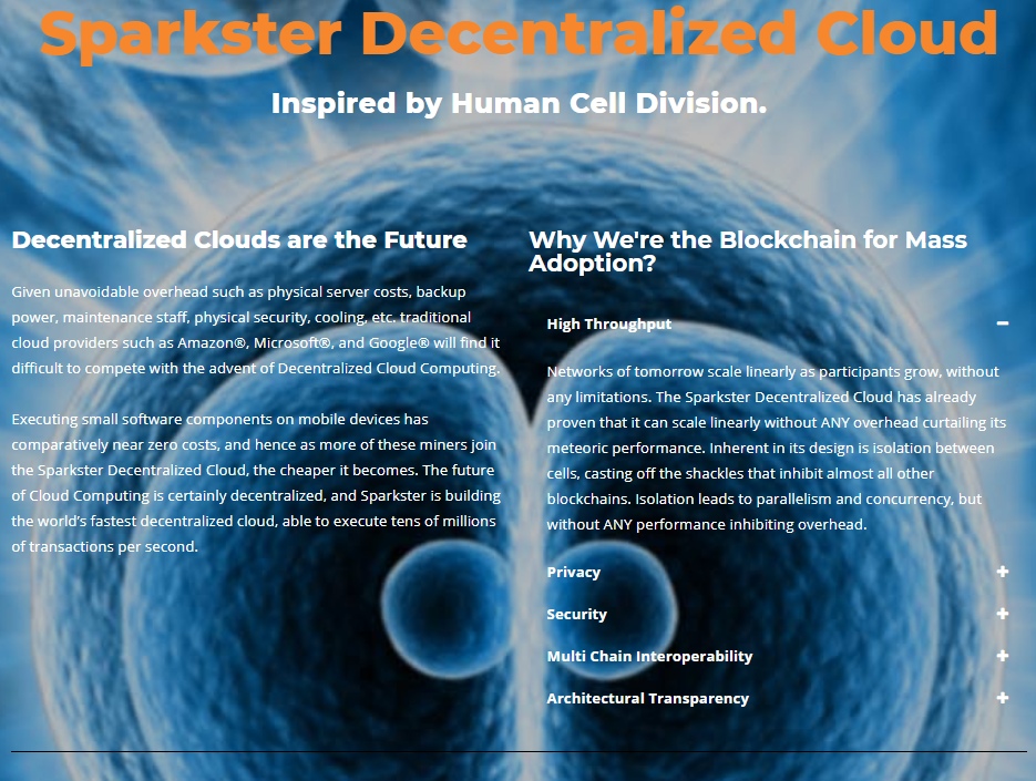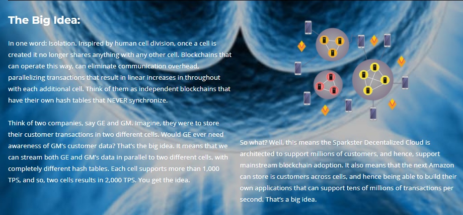 Sparkster ‒ это децентрализованная платформа, которая значительно упрощает процесс разработки приложений и ПО. Она избавляет разработчиков от необходимости длительного и скучного изучения языков программирования. Благодаря ей, код можно написать на простом английском языке, не потратив на это много времени. В дальнейшем он будет обработан, и система запустит его в уже готовом виде. Высокую скорость работы приложений обеспечит хорошая пропускная способность системы. Разработчики обещают, что она достигнет 10 миллионов транзакций в секунду.