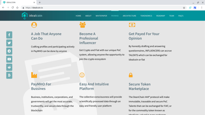 Idealcoin это токен формата ERC-20 который выступает инструментом для использования на платформе Pay HMO. Те кто не знаком с такой платформой, расскажу что данная платформа занимается тем что обрабатывает и помогает монетизировать информацию.