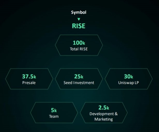 The company projects to provide 100,000 RISE tokens for the project which will be distributed in the following;