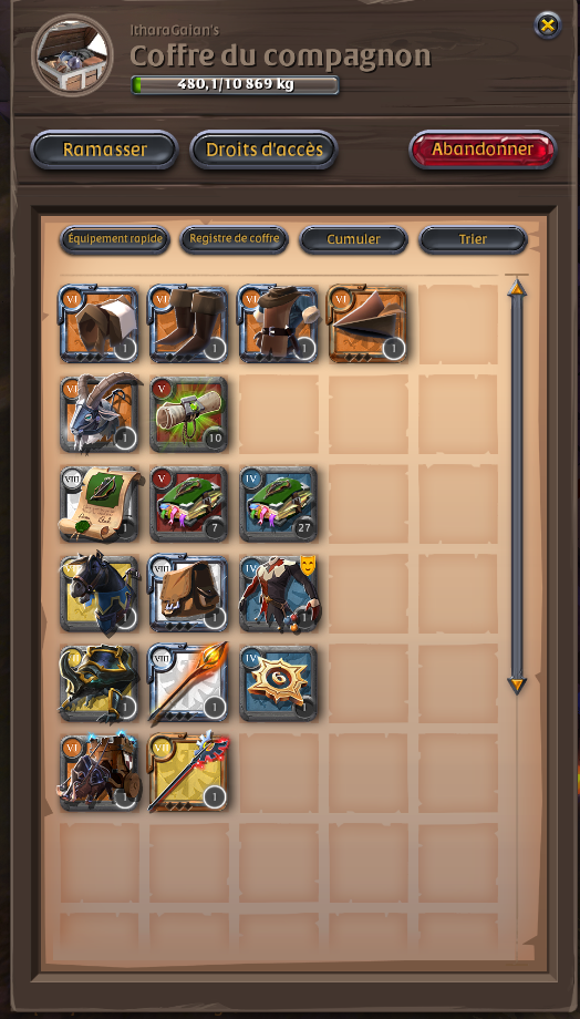 La tour mobile de combat d'argent T6 avec en prime le bâton de feux artéfact ardent T7