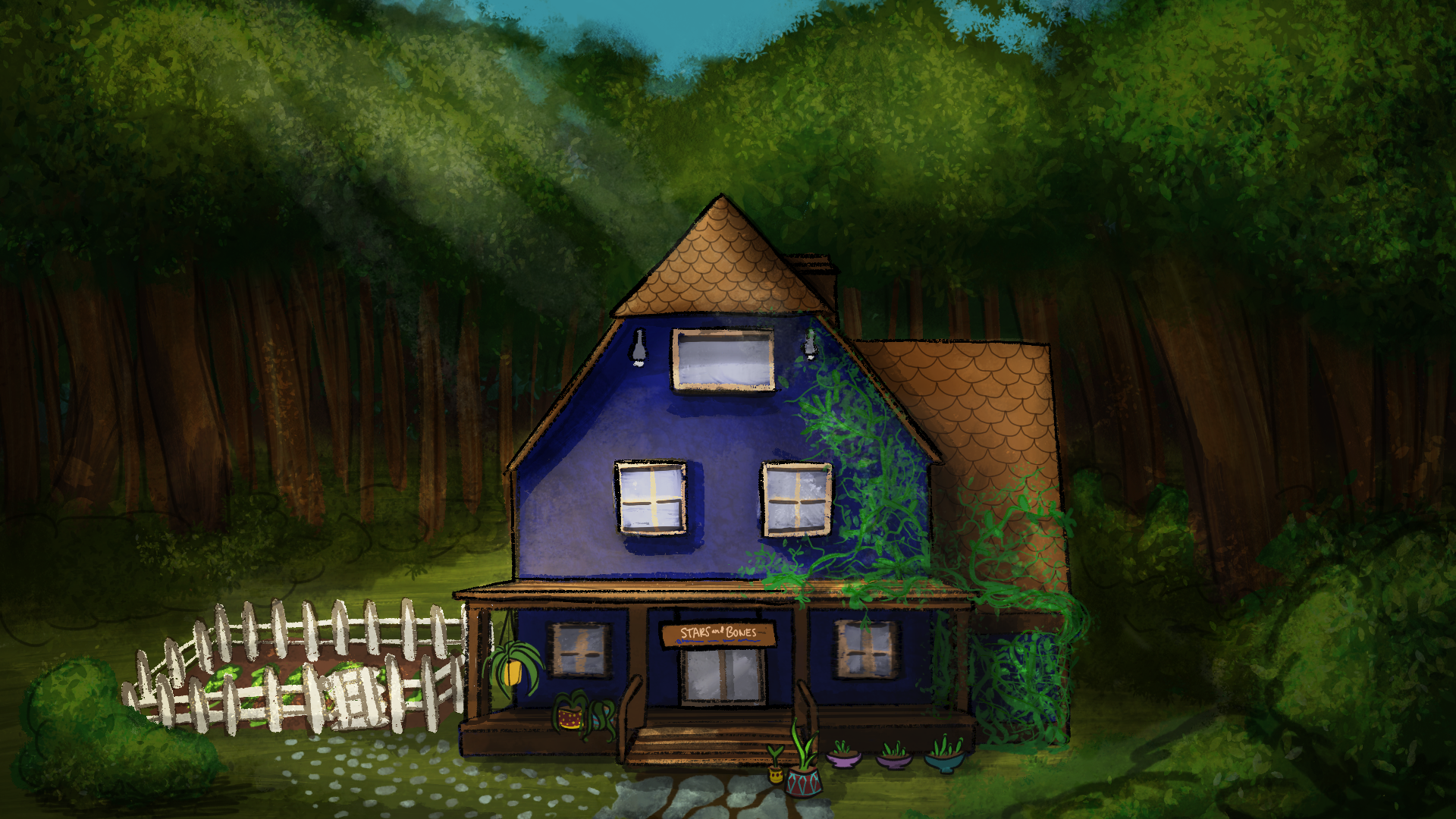 It’s overgrown with plants - in the garden, they grow common potion ingredients. Sometimes they forage in the woods to find the ingredients they need.