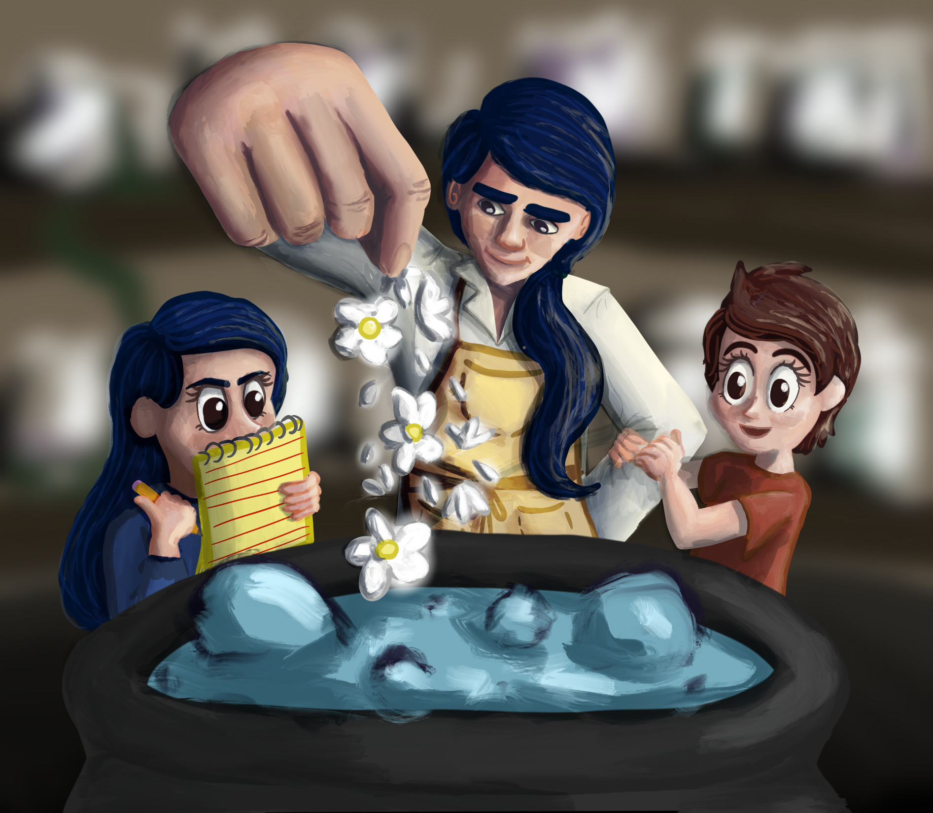 They live in a house in the woods, where they run their family potion and elixir shop.