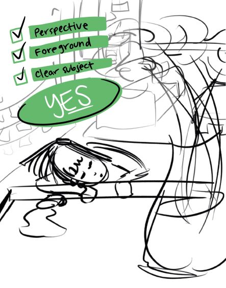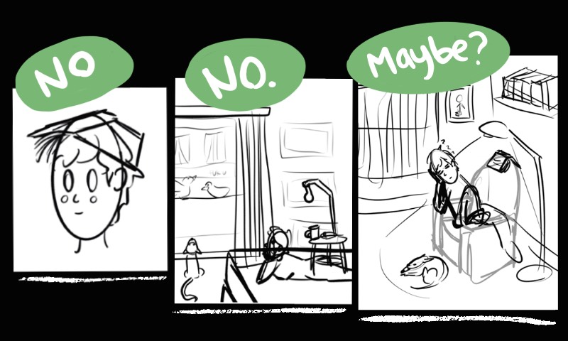 After setting my project dimensions to match that of the first drawing, I began sketching for potential compositions. I have aphantasia (which essentially means my mind's eye is super-glued shut), so this is an important step for me. Having a reference is always a good idea anyway (so I hear).