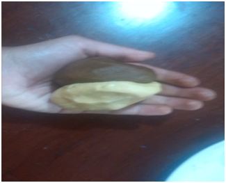 luego pon el polvo en un plato o tabla , para hacer la masa de chocolate empieza a agregar el polvo a la masa hasta que se torne oscuro .