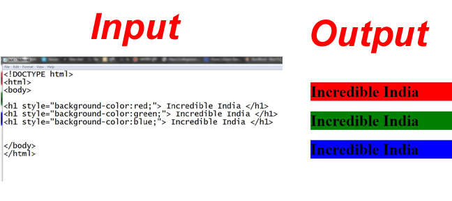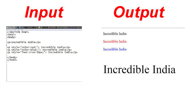 In the last class I discussed with you all about (p) tag, I hope you understood about (p) tag. In the first step of today's class I discussed how to color a text in (p) tag. And I also discussed how to enlarge any text in (p) tag. In the above picture, there are two inputs and outputs which you can understand by looking at them.
