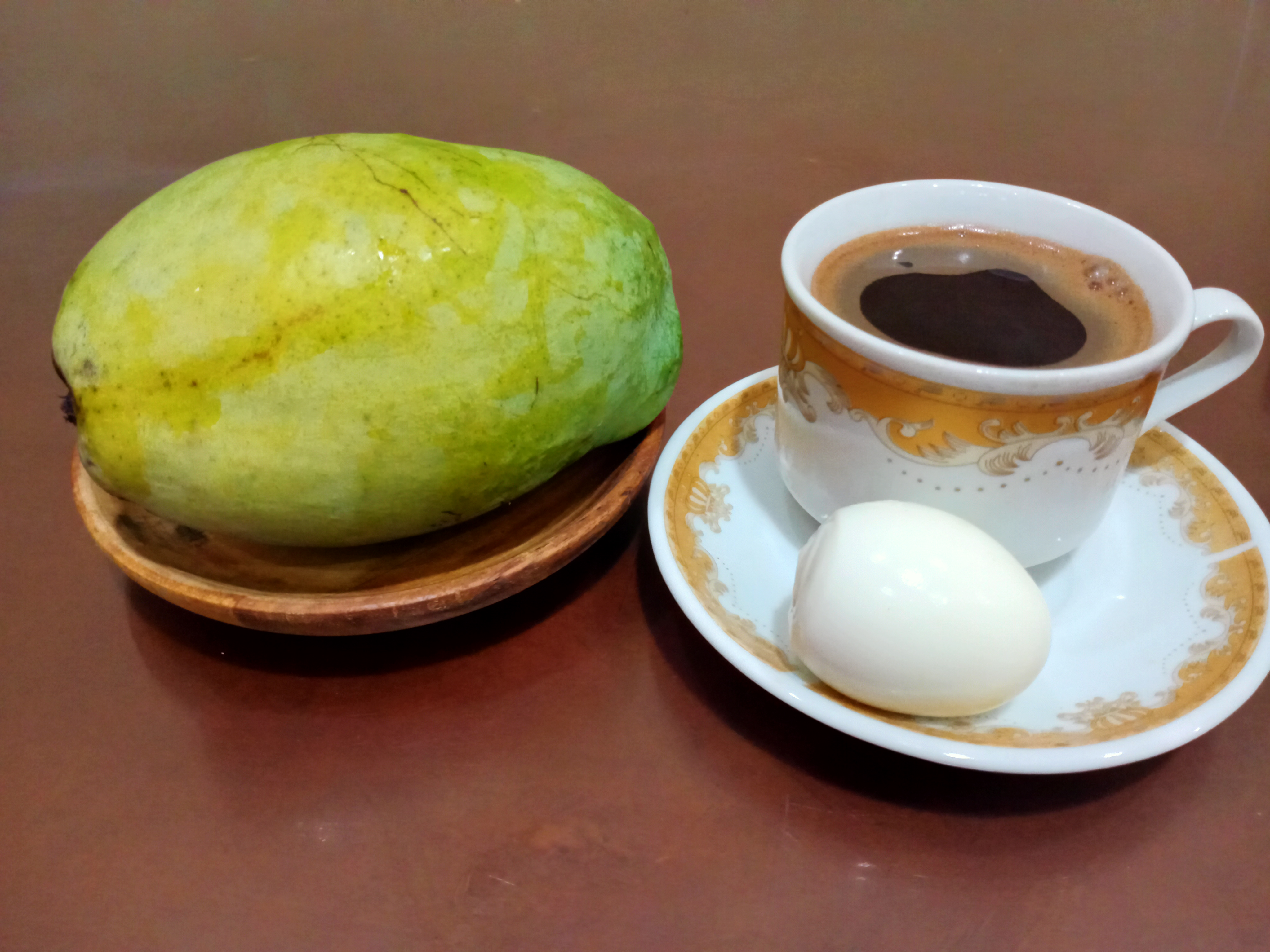 Rujak manggaTeh bunga telang ini bisa ku minum ketika sedang beristirahat dari kegiatan ku mengangkut tanah ke eks kolam koi yang ada di teras rumah kami.