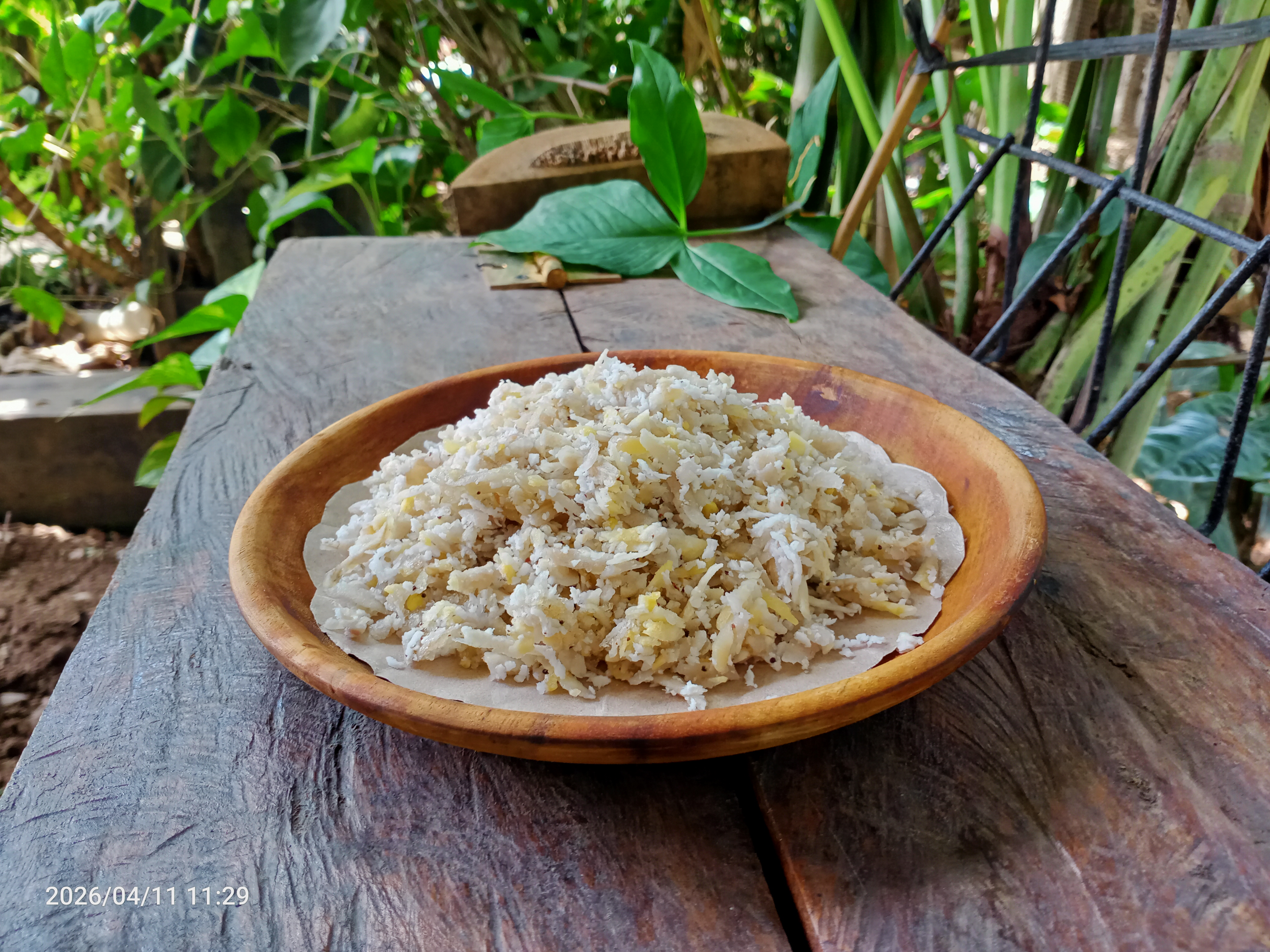 Ini adalah cemilan tradisional yang dibuat dari bahan pisang mengkal yang direbus dan kemudian di cincang-cincang (diparut) serta ditambahkan parutan kelapa dengan sedikit gula pasir.