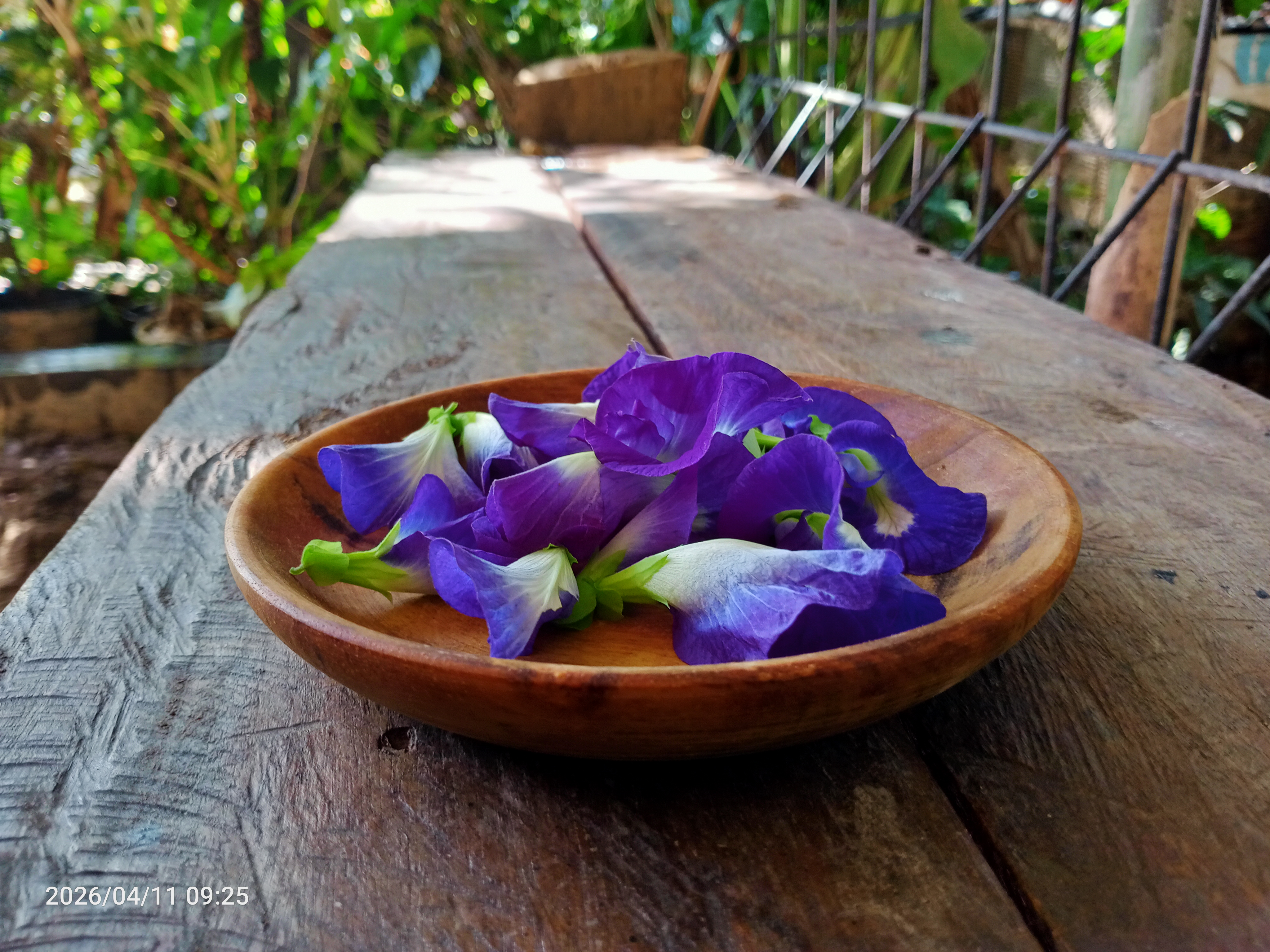 Karena aku tahu manfaat dari bunga telang ini maka aku memetiknya dan menyerahkan kepada istriku agar bisa dibuatkan minuman kesehatan.