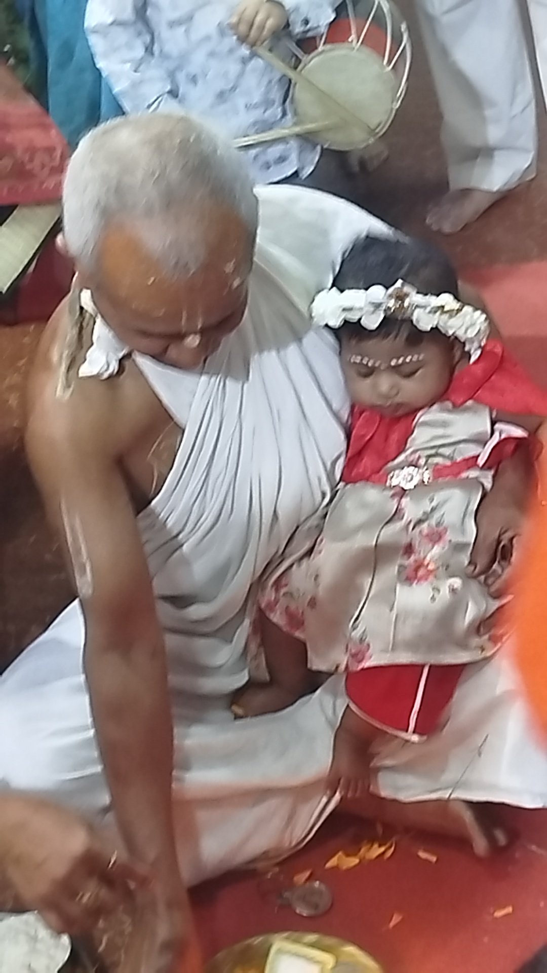 দাদু ঠাকুমা কিংবা দাদু দিদার কাছে তখন সন্তানের থেকেও নাতি বেশি গুরুত্ব পেয়ে থাকে।এই বিশেষ দিনে তারা সবাই ধুমধাম করে পালন করতে চায় । অন্নপ্রাশন এর প্রসাদের থালায় বিভিন্ন রকমের খাবার সাজিয়ে রাখা হয় তার সাথে অন্য একটি থালায় কলম , একটু মাটি, গীতা,পাঠ্য বই ও টাকা এগুলো রাখা হয়। শিশুকে তিলক দিয়ে খুব সুন্দর ভাবে সাজানো হয়। মন্দিরের ঠাকুর দাদা প্রথম শিশুর মুখে অন্নপ্রসাদ দিয়ে থাকেন, শিশুর মামা এবং এক এক করে আত্মীয়-স্বজন সবাই শিশুকে আশীর্বাদ করেন এবং একটু সামান্য প্রসাদ খাইয়ে দেয়।