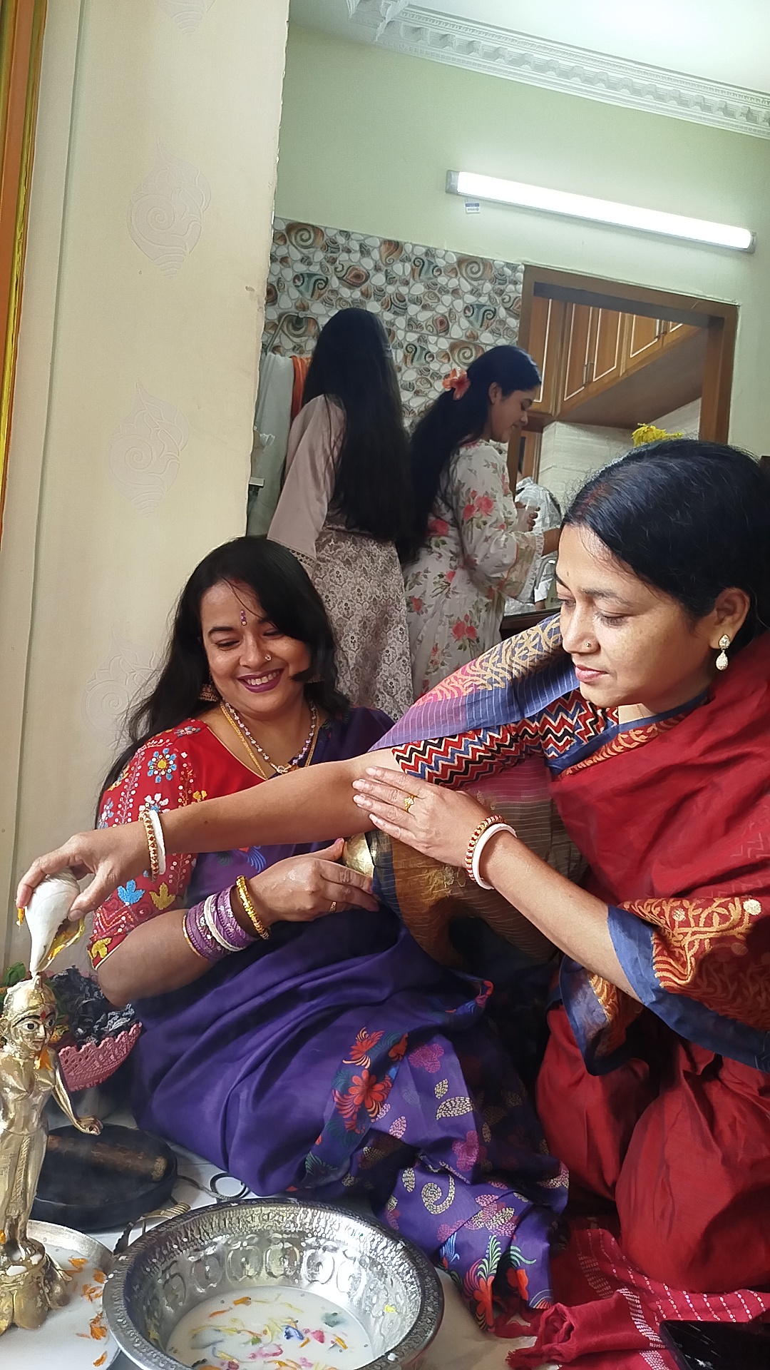 যেহেতু নতুন মন্দির এবং নতুন বিগ্রহ প্রতিস্থাপন করা হবে তাই পুরোহিতের দ্বারা প্রাণপ্রতিষ্ঠা অনুষ্ঠান সম্পন্ন হবে। তার জন্য অনেক কিছু আয়োজন করা হয়েছে, নাম কীর্তন এবং প্রসাদ এর ব্যবস্থা করা হয়েছে ।আত্মীয় স্বজনদের আমন্ত্রণ জানানো হয়েছে । আমরা সকলে একত্রিত হলাম, যেন উৎসবে পরিণত হলো ।