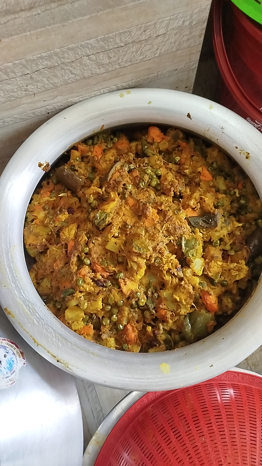 সমস্ত সবজি রাতে কেটে রাখা হয়েছিল। খুব সকালে উঠে দাদাভাই রান্না শুরু করে দিয়েছে। বৌমা (দিদির ছেলে বউ) ও আমি ভোগের প্রসাদ রান্না করেছিলাম। সকলে মিলে অনেক সুন্দর একটি দিন কাটালাম।