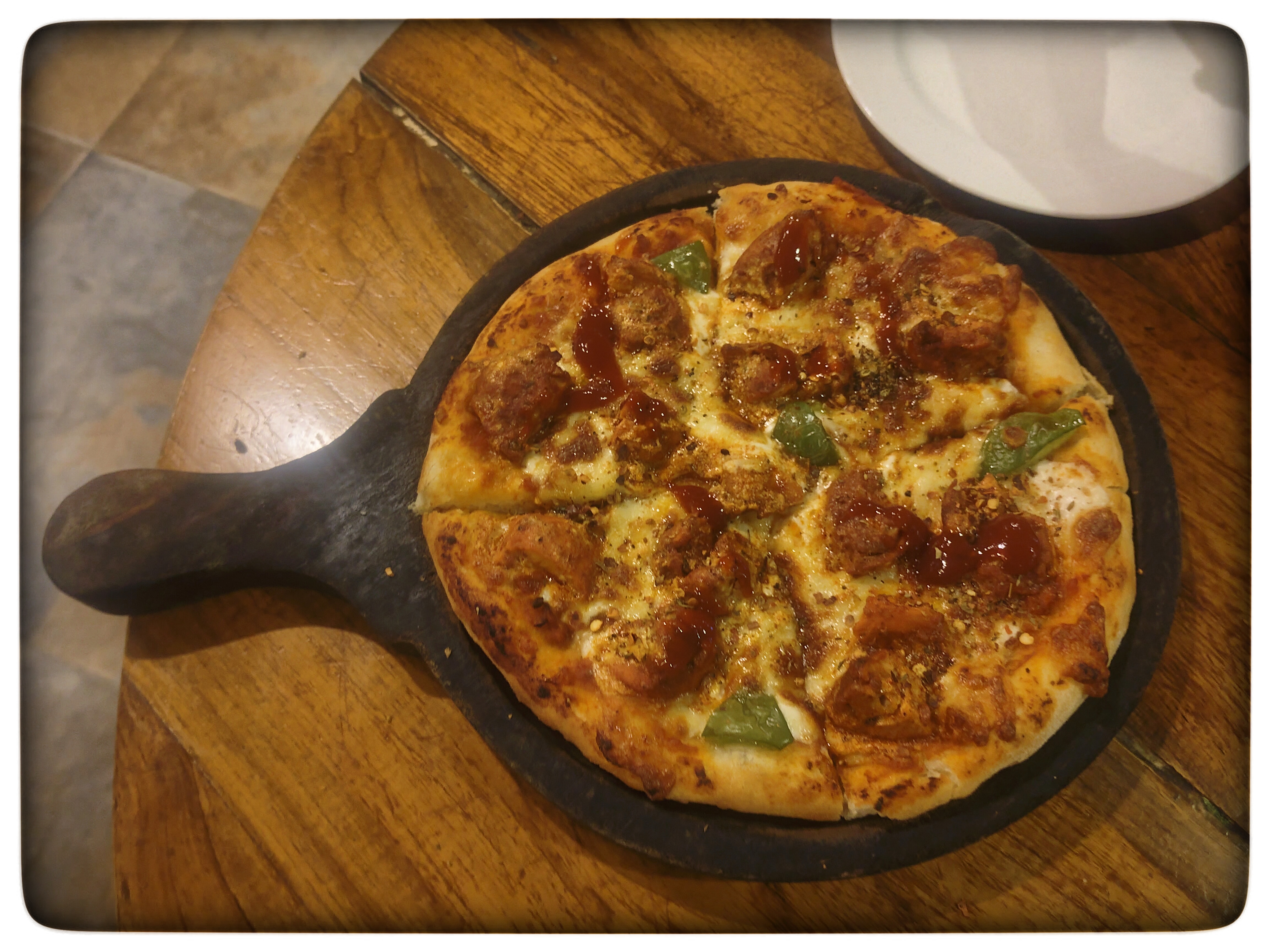 তারপর আমরা কিছুক্ষণ অপেক্ষা করে ভিতরে ঢুকেছিলাম। আমরা আগে থেকেই ভেবে রেখেছিলাম যে আমরা পিজ্জা খাব। তাই আমরা একটা আচারি চিকেন পিজ্জা অর্ডার দিয়েছিলাম। এটা আমাদের খুব পছন্দের একটা পিজ্জা। খেতে অসাধারণ লাগে। আর এই রেস্টুরেন্টের কোয়ান্টিটি যথেষ্ট ভালো তাই একটা পিজ্জা দুজন মিলে খেলে একদম পেট ভরে যায়। আমরা আগে এখানে এলে অনেক খাবার অর্ডার দিতাম তারপর আর খেতে পারতাম না। পরে সেগুলো প্যাক করে বাড়ি নিয়ে যেতে হতো। তাই আমরা কোনরকম রিস্ক নিলাম না। একটা পিজ্জাই শুধু অর্ডার দিয়েছিলাম।