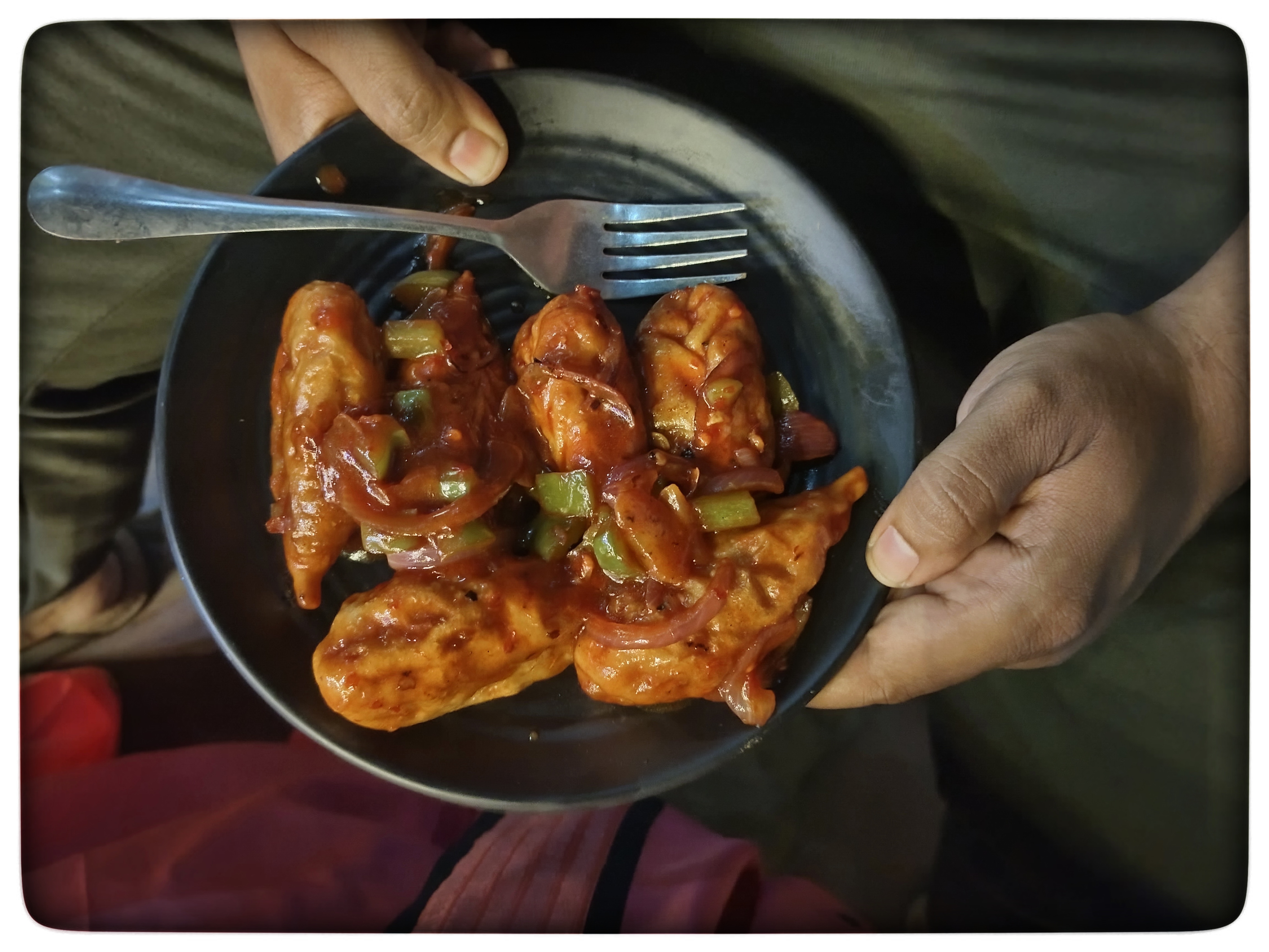 বিকেল বেলায় আমি আর আমার বর ঠিক করেছিলাম একটু বেরোবো। তাই আমি একটা নতুন শাড়ি পরেছিলাম। তারপর কাছাকাছি কয়েকটি দোকানে হালখাতা সেরে মিষ্টি প্যাকেট নিয়ে বাড়ি এসেছিলাম। তবে এখানেই শেষ নয়। বাড়িতে কিছুক্ষণ বসে আমরা আবার বেরিয়ে পড়েছিলাম একটু ঘুরতে। রাস্তায় এক জায়গায় মোমো খাওয়ার জন্য দাঁড়িয়েছিলাম। যেখানে মোমো খাওয়ার জন্য গিয়েছিলাম ওইখানে বেশ ভালো মোমো বানায়। তাই আমরা মোমো খেলে ওইখান থেকেই খাই। আমরা অন্য দিন স্টিম মোমো খেলেও সেই দিন আমরা প্যান ফ্রায়েড মোমো খেয়েছিলাম। এক প্লেটে ৬ টা মোমো দিয়েছিল। দাম নিয়েছিল ৯০ টাকা মানে ১৬ স্টিম মতো।
