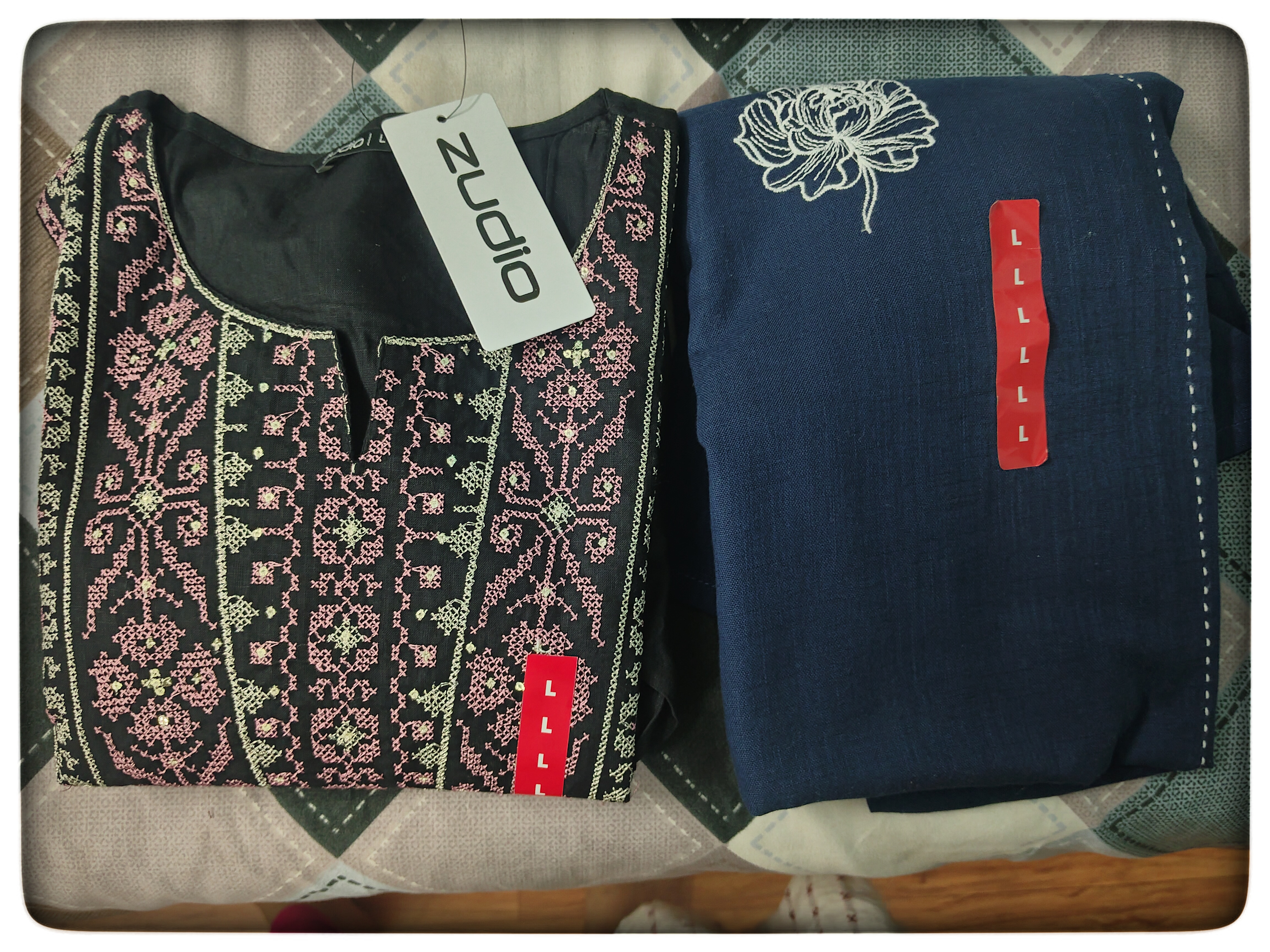 আমার পড়ানো শেষ হয়েছিল রাত আটটার সময়। তারপর আমার বর আমাকে নিতে আসে। এরপর দুজন মিলে ১৫ মিনিটের মধ্যে পৌঁছে যাই zudio তে। সেই দিন তেমন ভিড় ছিল না। আমরা প্রথমে মেয়েদের সেকশন টাই ঘুরে দেখি। সেখানে বিভিন্ন রকমের জামা কাপড় ছিল। আমি যেহেতু ভেবেই রেখেছিলাম একটা কুর্তি কিনব, তাই সেটাই দেখছিলাম। বেশ কয়েকটা দেখার পর আমার দুটো কুর্তি পছন্দ হয়েছিল। সেই দুটো নিয়ে নিয়েছিলাম। যদিও আমার শাশুড়ি মা কালো জিনিস পরা পছন্দ করে না, তাই আমি প্রথমে নেব কিনা ভাবছিলাম, তবে পরে আমার বর নিতে বলাই আমি আর সংকোচ করিনি। কালো কুর্তিটার দাম ছিল ৩৯৯ টাকা মানে ৭৩ স্টিম মতো র নীল রংয়ের কুর্তিটার দাম ছিল ২৯৯ টাকা মানে ৫৪ স্টিম মতো।আরো কয়েকটা কুর্তি পছন্দ হয়েছিল বটে তবে একদিনে বেশি কিছু কিনতে চাইনি। কারণ পরে আরো একদিন আমাদের এখানে আসতে হতো, বাড়ির সকলের জন্য কিছু কেনাকাটা করতে।