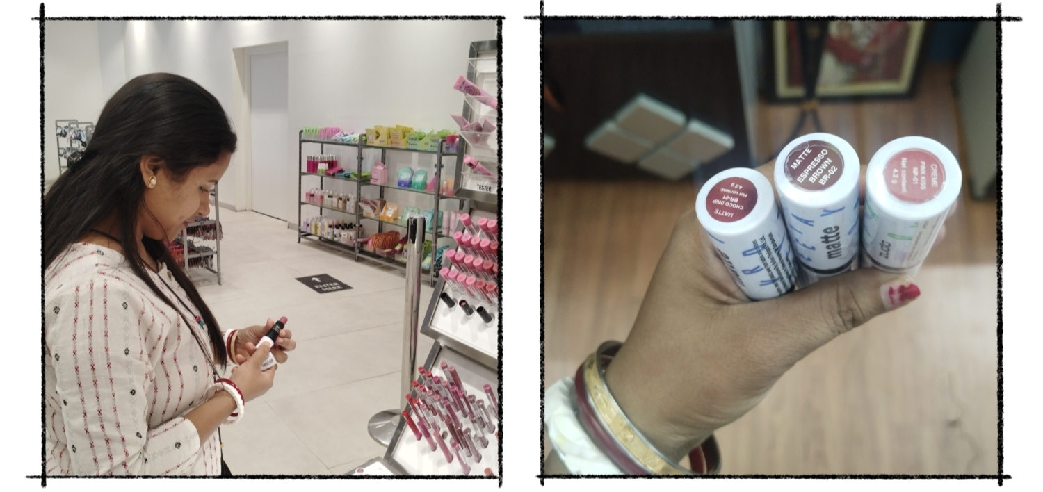ওখানে কসমেটিকস এর খুব ভালো ভালো কালেকশন আছে। আমি এর আগেও এখান থেকে লিপস্টিক কিনেছি। আমার এখানকার লিপস্টিক বেশ ভালো লাগে। তাই আমি আরো কিছু লিপস্টিক দেখার জন্য গিয়েছিলাম। আমি লিকুইড লিপস্টিক কিনতে চাইনি। তাই অন্য কিছু দেখছিলাম। ওখানে ট্রাই করার জন্য যে স্যাম্পল গুলো রাখা থাকে সেগুলো হাতে দিয়ে দেখছিলাম। তারপর আমার দুটো লিপস্টিক পছন্দ হয়েছিল। এগুলো কি নিয়ে আমরা যখন বিলিং কাউন্টারের দিকে যাচ্ছি, তখন আমার মনে হল আরো একটা লিপস্টিকের কালার আমার ভালো লেগেছিল সেটা নিয়ে নেওয়ায় ভালো। নইলে বাড়ি গিয়ে শুধু মনে হবে ওটা কেন কিনলাম না। তাই আবার নিচে গিয়ে ওই লিপস্টিকটা নিয়ে এসেছিলাম।।