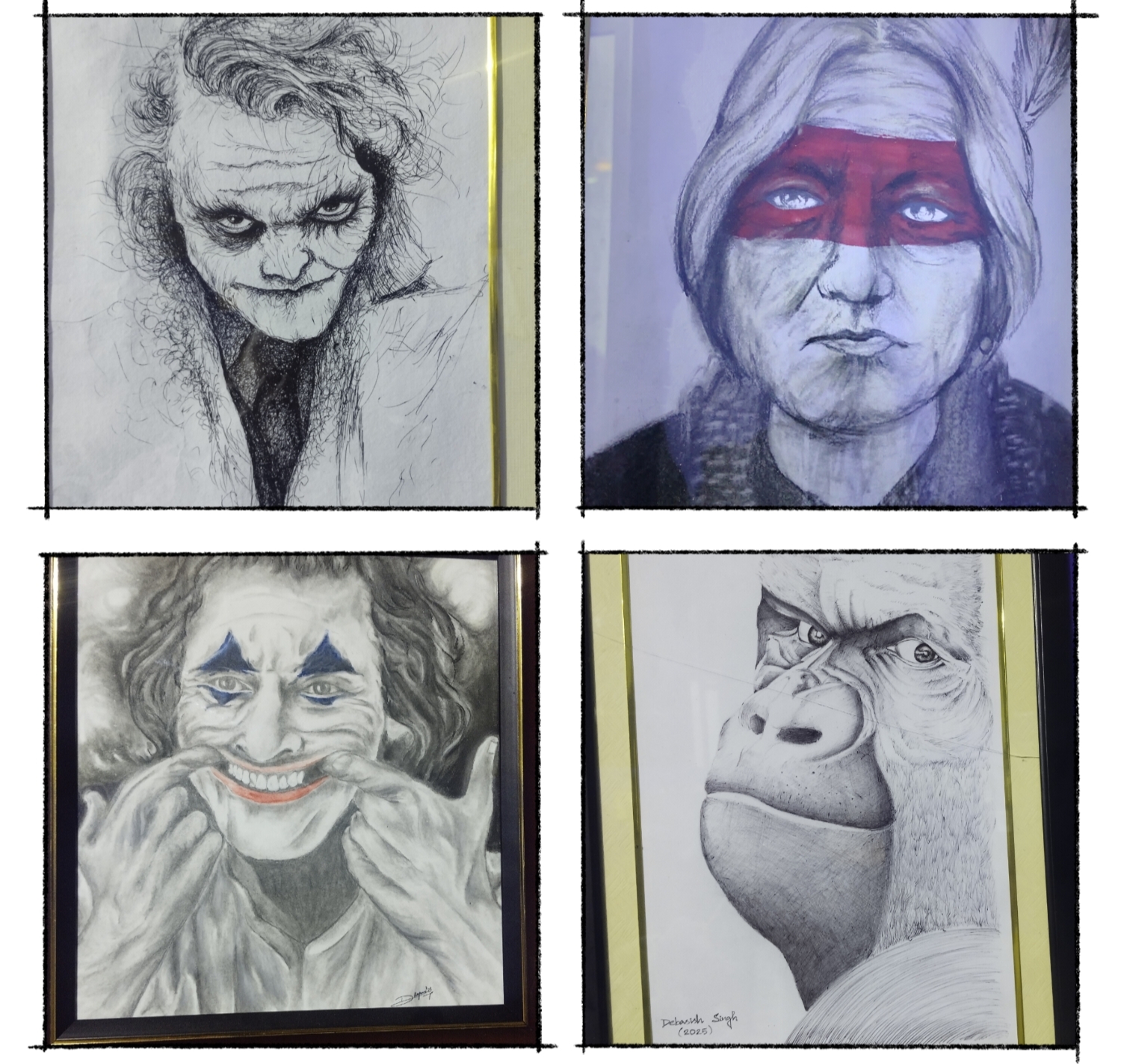 এরপরে আপনাদের সাথে শেয়ার করব আরো চারটি চিত্র। এখানে কতগুলো প্রতিকৃতি ফুটিয়ে তোলা হয়েছে। প্রথমেই উপরের বামদিকের ছবিটি সম্পর্কে আপনাদের বলি। এটি বিখ্যাত ডিসি কমিকস চরিত্র 'জোকার' এর এটি ছবি আঁকা আছে। ছবিটিতে দেখানো হয়েছে, জোকারটির চুলগুলো খানিকটা অগোছালো এবং তার মুখে আছে একটি রহস্যময় ও ভয় জাগানোর মতো হাসি। এই ছবিটি দেখে বাচ্চারা ভয় পাচ্ছিল।