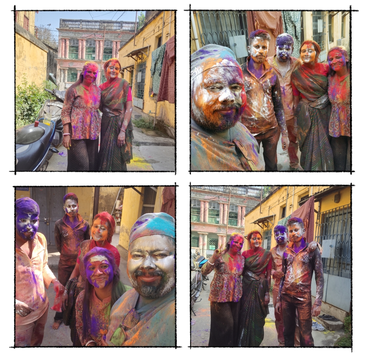 আমি আর আমার বর প্রথমে সেখানে পৌঁছে গিয়েছিলাম যেখানে বাকিদের আসার কথা ছিল। একটা colleague এর বাড়িতে মিটিংটা আয়োজন করা হয়েছিল। আমরা যখন প্রথমে পৌঁছলাম তখন দেখলাম বাকিরা কেউই আসেনি। তাই আমরা একটু ঘুরে আবার কিছুক্ষণ পরে আসি। তখন সকলে চলে এসেছিল। আমরা ভিতরে গিয়ে বসেছিলাম। একটা colleague এর ছোটো একটা ছেলে ছিল, সে তো আমাদের রং মাখানোর জন্য খুবই আগ্রহী ছিল। সেই সাথে ইতিমধ্যে অনেক রং নিজেও মেখে ছিল। ছোট বাচ্চা যেহেতু রং মাখাতে চাইছিল তাই খুব সাগ্রহেই আমরা রং মেখেছিলাম।