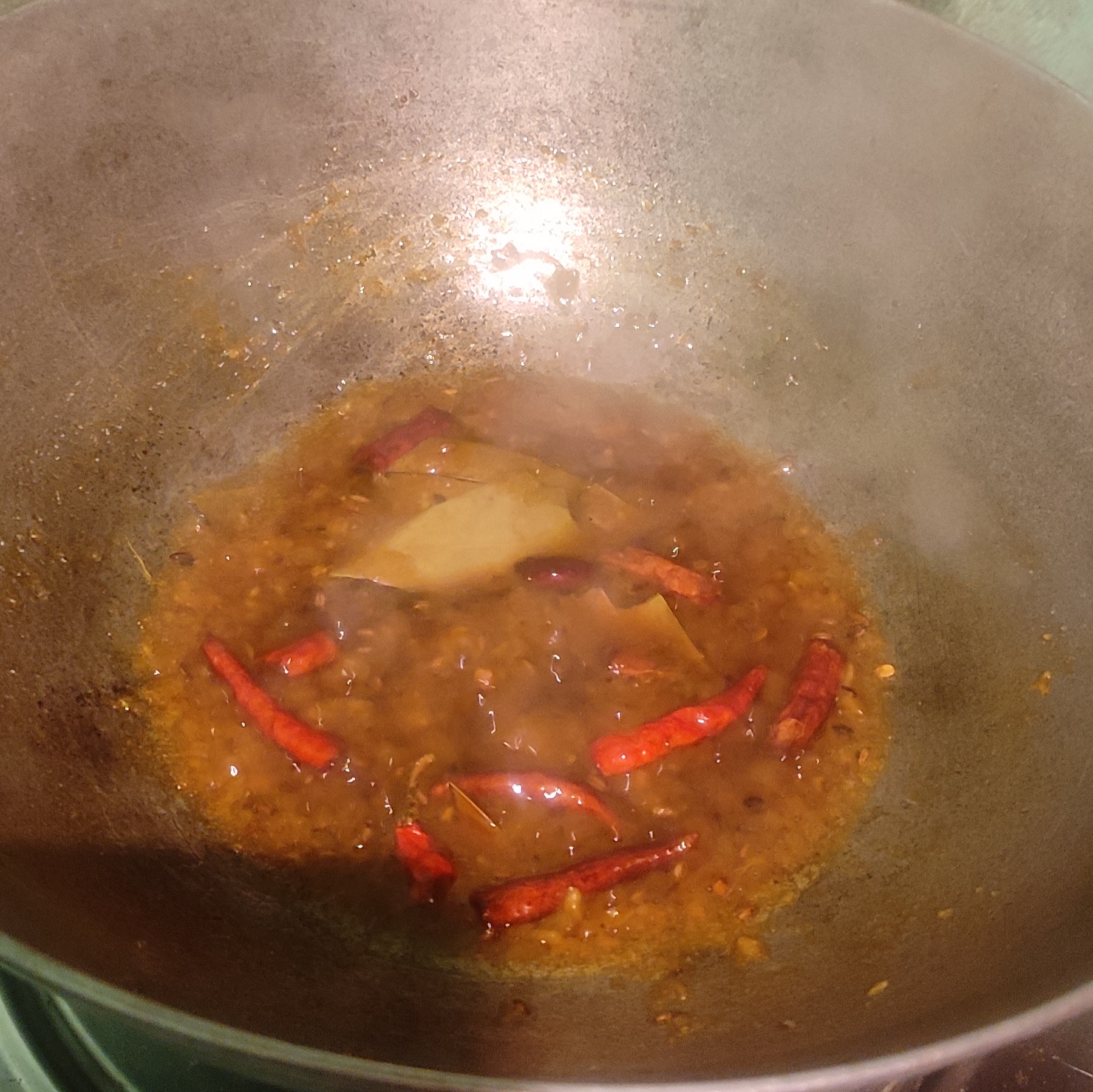 ৭)ভাজার পর কড়াইতে যে অবশিষ্ট তেল থাকবে তারমধ্যে গোটাজিরে ,শুকনোলঙ্কা ফোরন দিতে হবে।