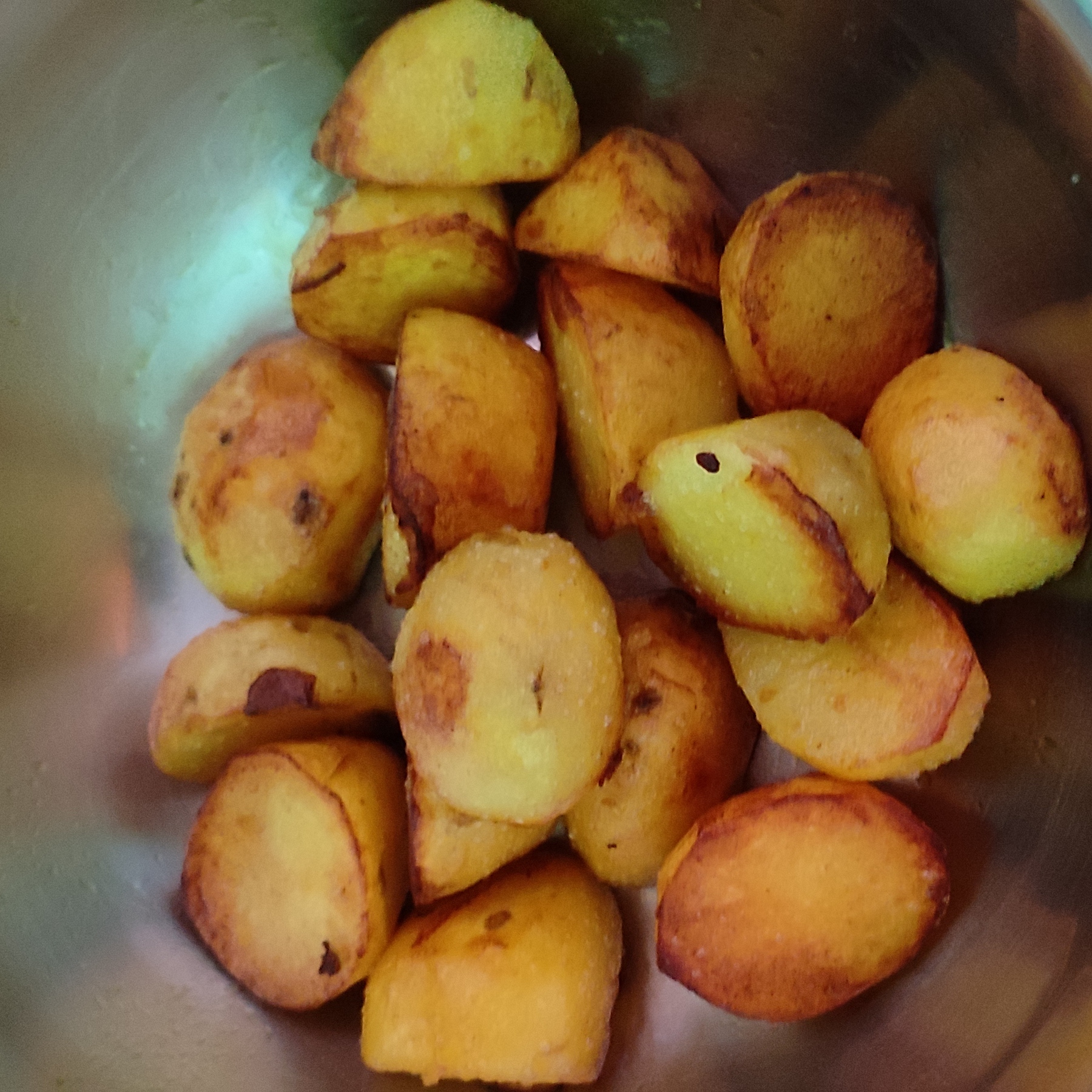 ৫)এরপর তেলটি গরম হলে আলুগুলো ভেজে নিয়ে একটা পাত্রে নামিয়ে রাখতে হবে।