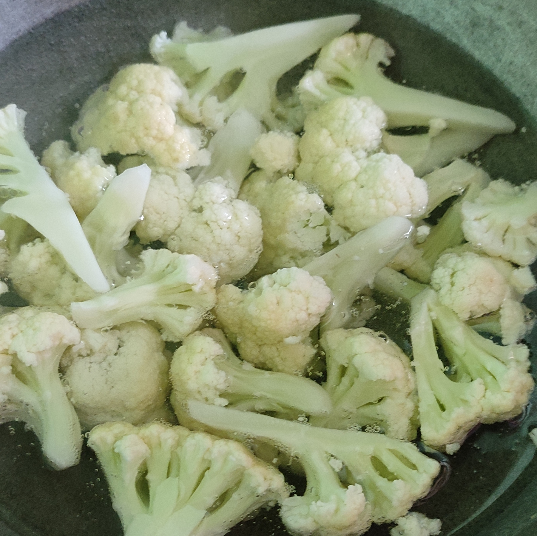 4)কড়াই গরম হয়ে গেলে তারমধ্যে জল দিয়ে ফুলকফি গুলো একটু ভাপিয়ে নিতে হবে।