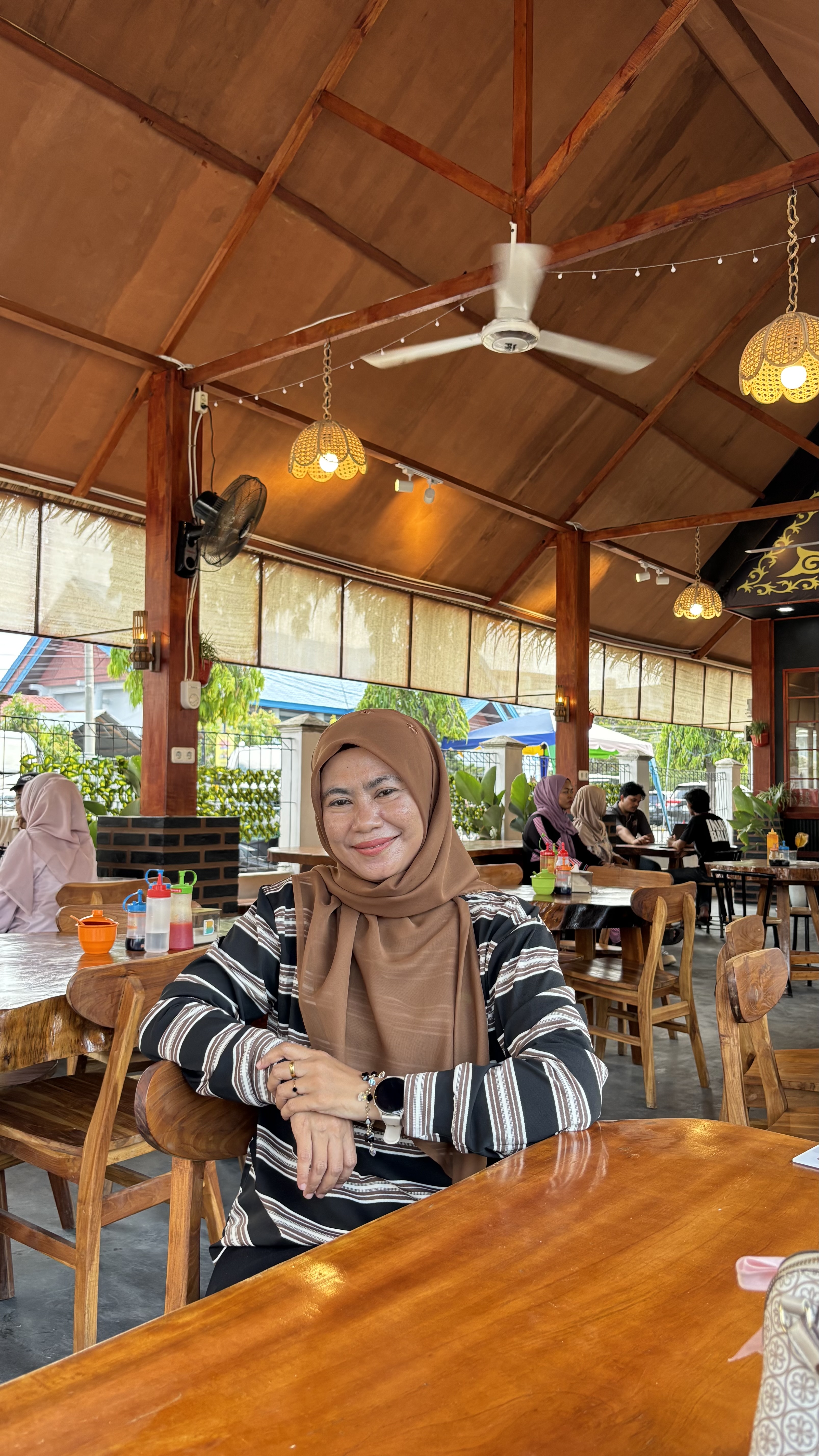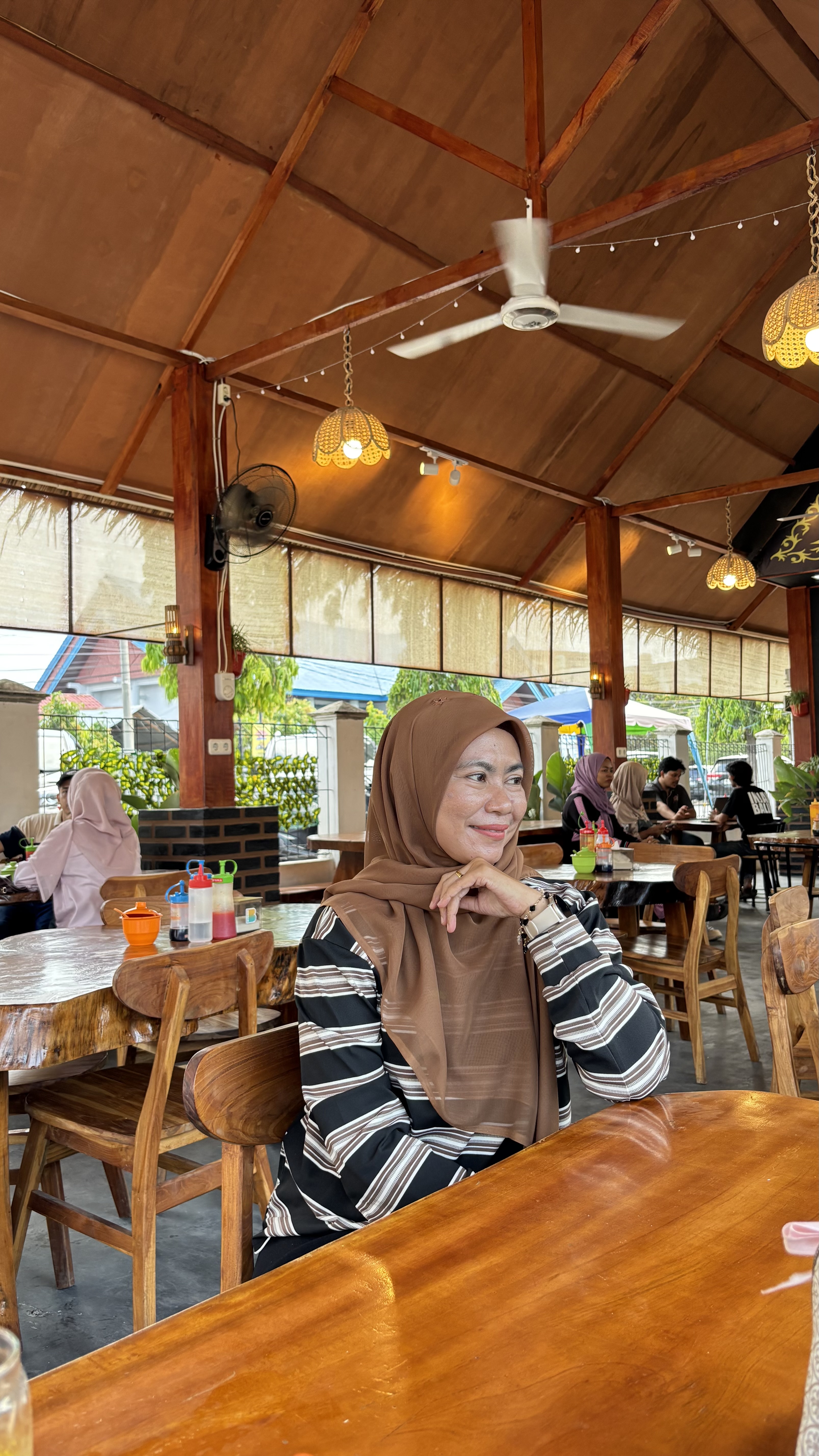 Sembari menanti orderan makanan dan minuman kami kemudian berbincang dan bercanda, sayangnya putri bungsuku tak bisa turug hadir bersama kami berhubung ia sudah kembali mondok.