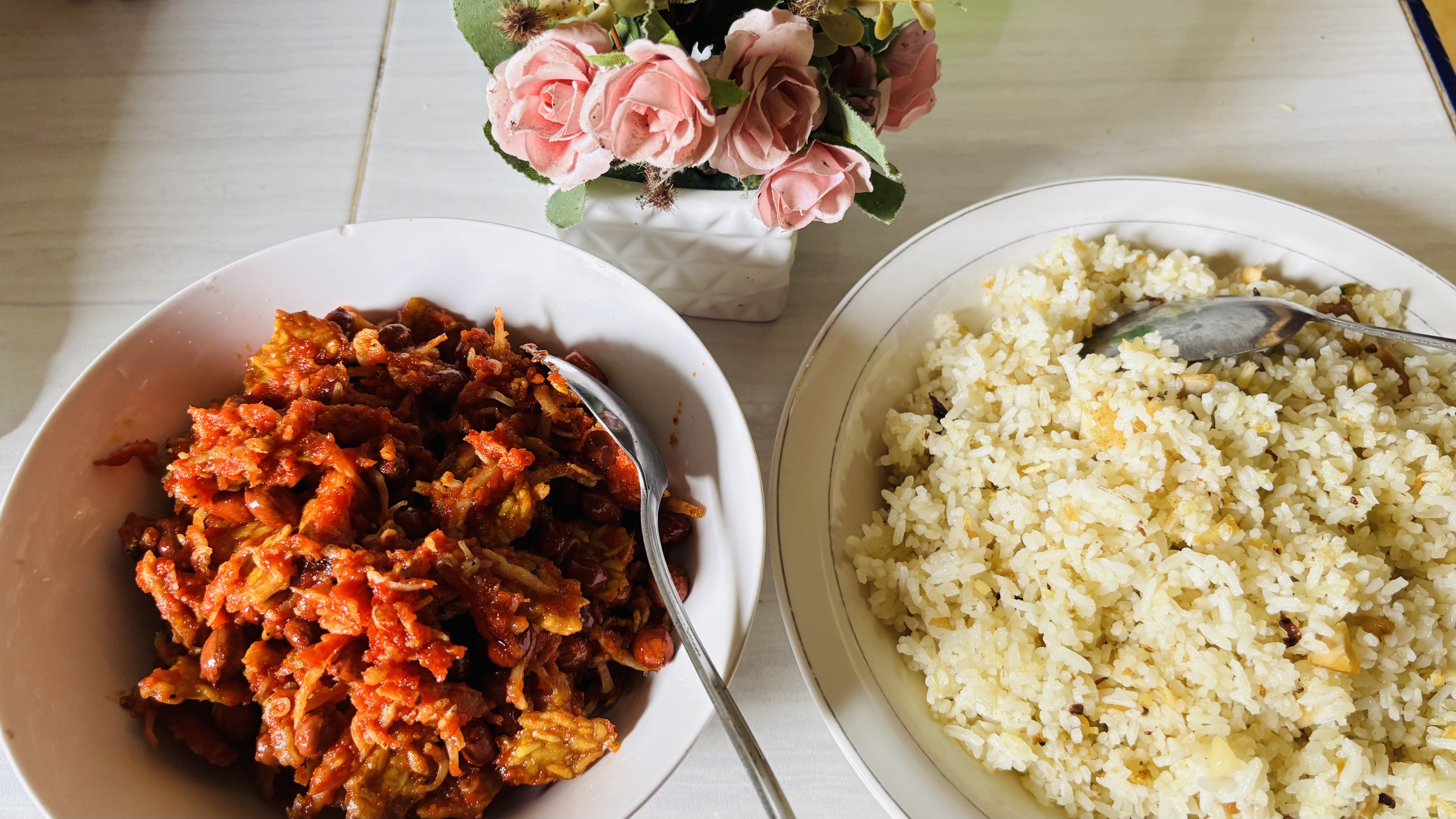 Pagi weekend aku kembali turun ke dapur menyiapkan.menu sarapan bagi keluarga kecilku. Pavi ini aku memasak nasi goreng kampung dan balado teri dicampur dengan kacang dan tempe. Hanya menu sederhana saja namun aku buat dari hati dan penuh cinta.