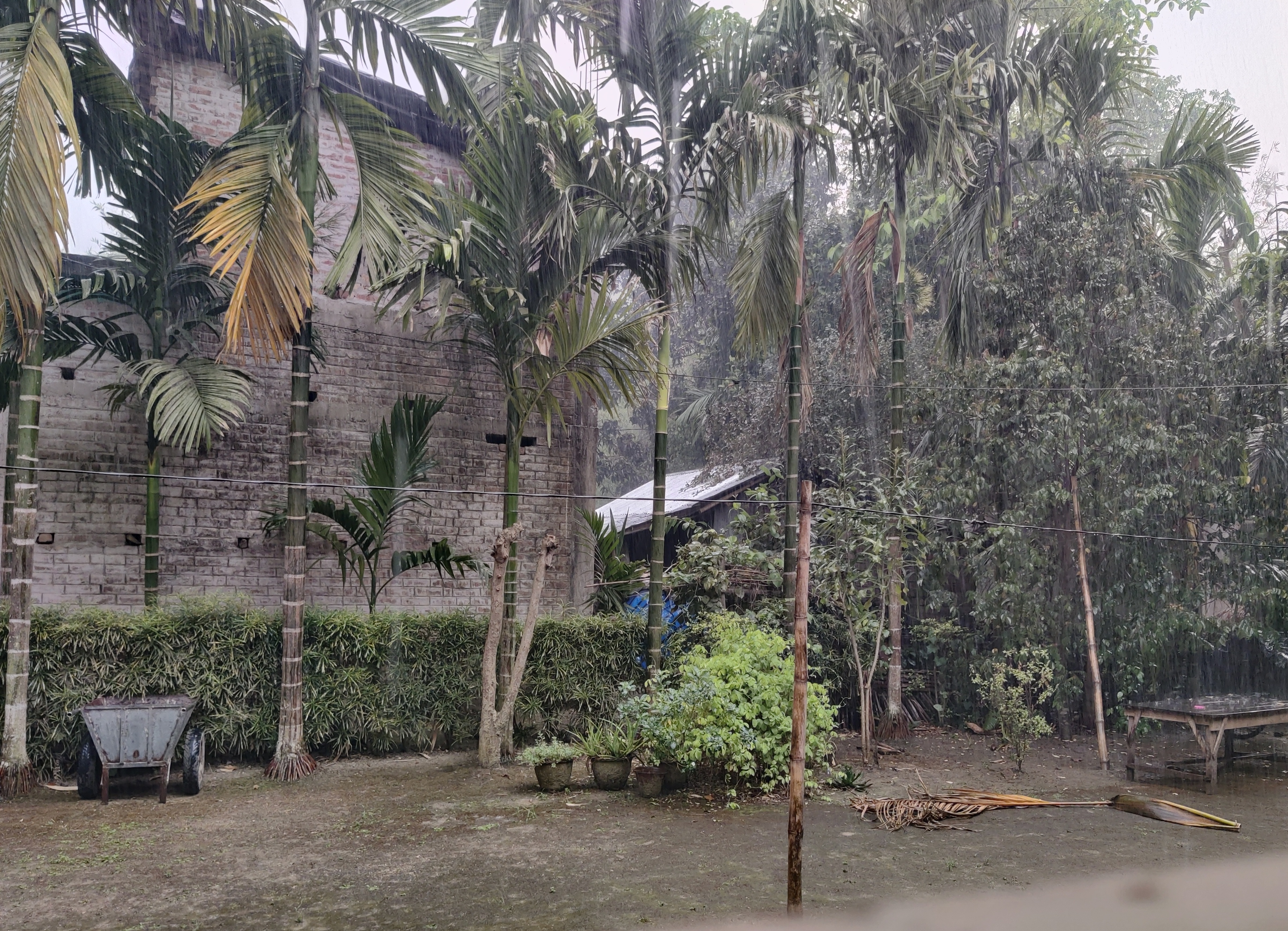 আমরাও সকলে রাতে সেখানেই খাবো এমনটাই ঠিক হয়েছিলো। তবে কিছুক্ষণের মধ্যে এমন ঝড় বৃষ্টি শুরু হল যে আমরা ভেবেছিলাম হয়তো এই নাম সংকীর্তনে যাওয়াই হবে না। তবে কথায় আছে "মেঘ যত গর্জয় তত বর্ষায় না"। এই কারণে আকাশে প্রচুর মেঘ থাকলেও খুব বেশি বৃষ্টি কিন্তু সেদিন হয়নি।