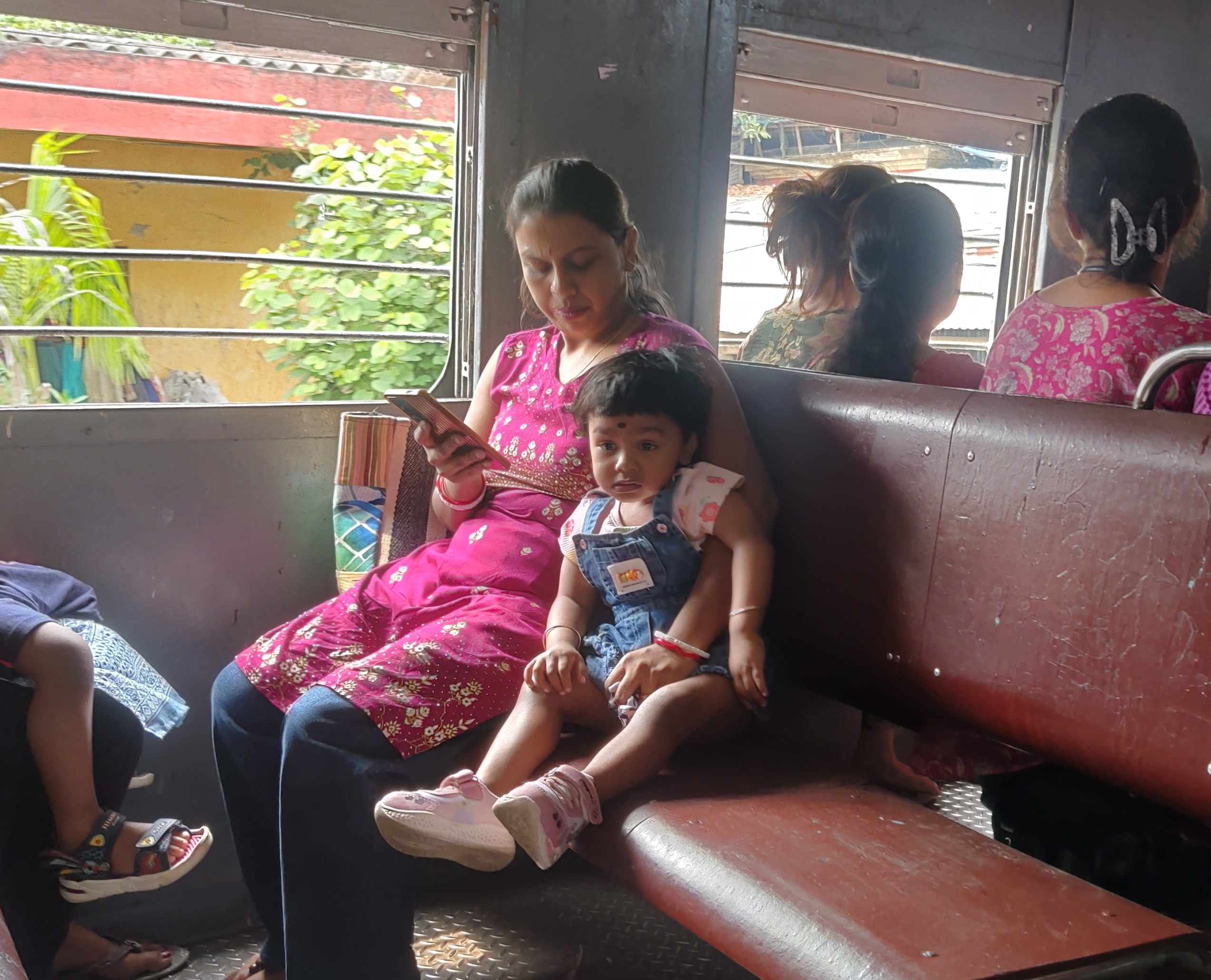 যাওয়ার সময় বেশ ভালো রোদ্দুর ছিলো। আবার ট্রেন গন্ডগোল থাকার কারণে প্লাটফর্মে বেশ কিছুক্ষণ অপেক্ষাও করতে হয়েছিলো। অবশেষে যখন ট্রেন এলো ট্রেনে উঠে দেখলাম লোকজনের ভিড় তেমন একটা নেই। বসার জন্য জায়গাও পেয়ে গিয়েছিলাম। পরের স্টেশন থেকে একটি বাচ্চা মেয়ে তার মায়ের সাথে ট্রেনে উঠেছিলো। তারা বনগাঁ যাওয়ার উদ্দেশ্যে রওনা করেছিলো, তবে আমাকে নামতে হয়েছিল ঠাকুরনগর স্টেশনে। মাঝের কয়েকটি স্টেশন বাচ্চাটির সাথেই আমার সময় কেটে গিয়েছিলো।
