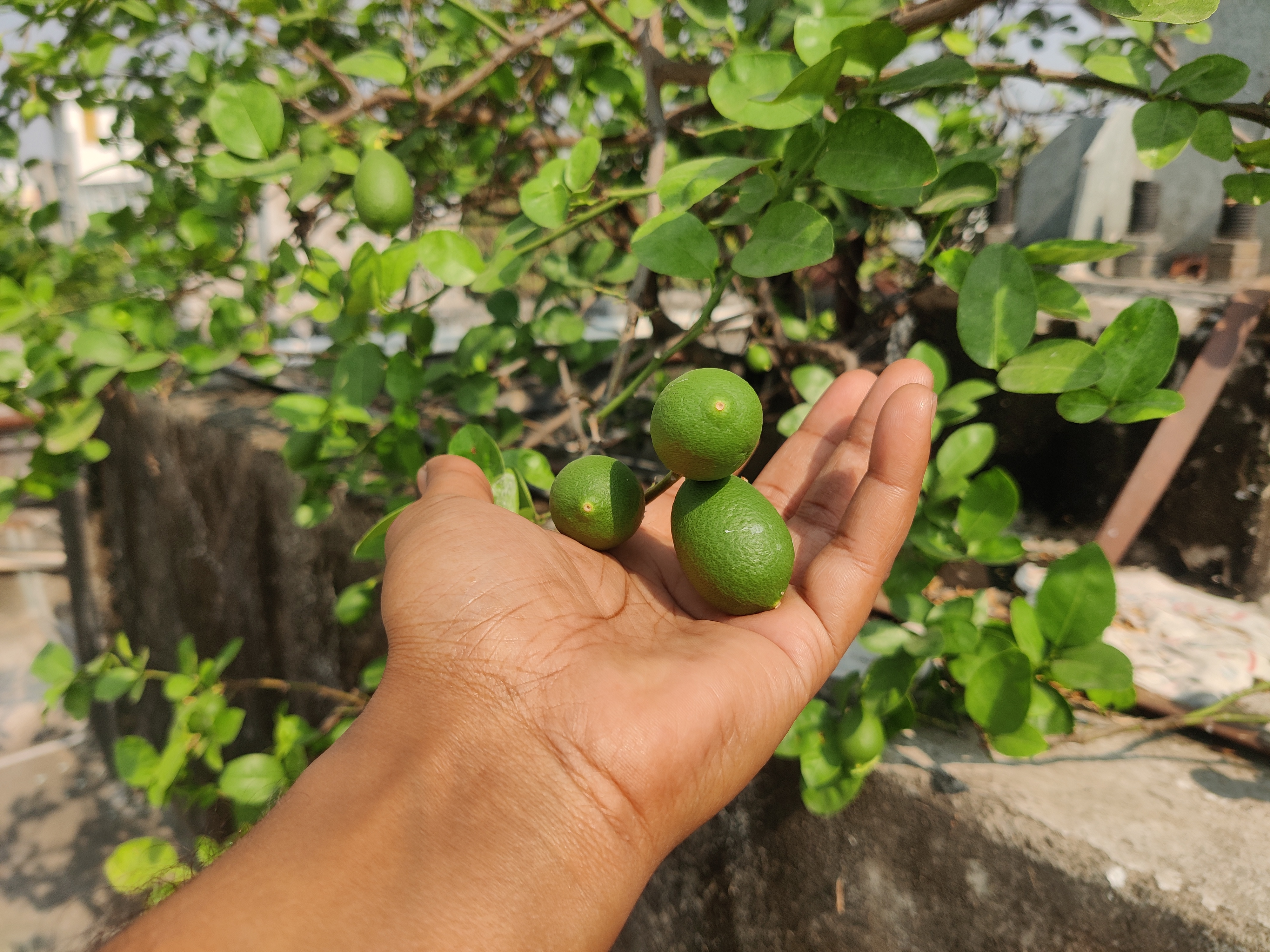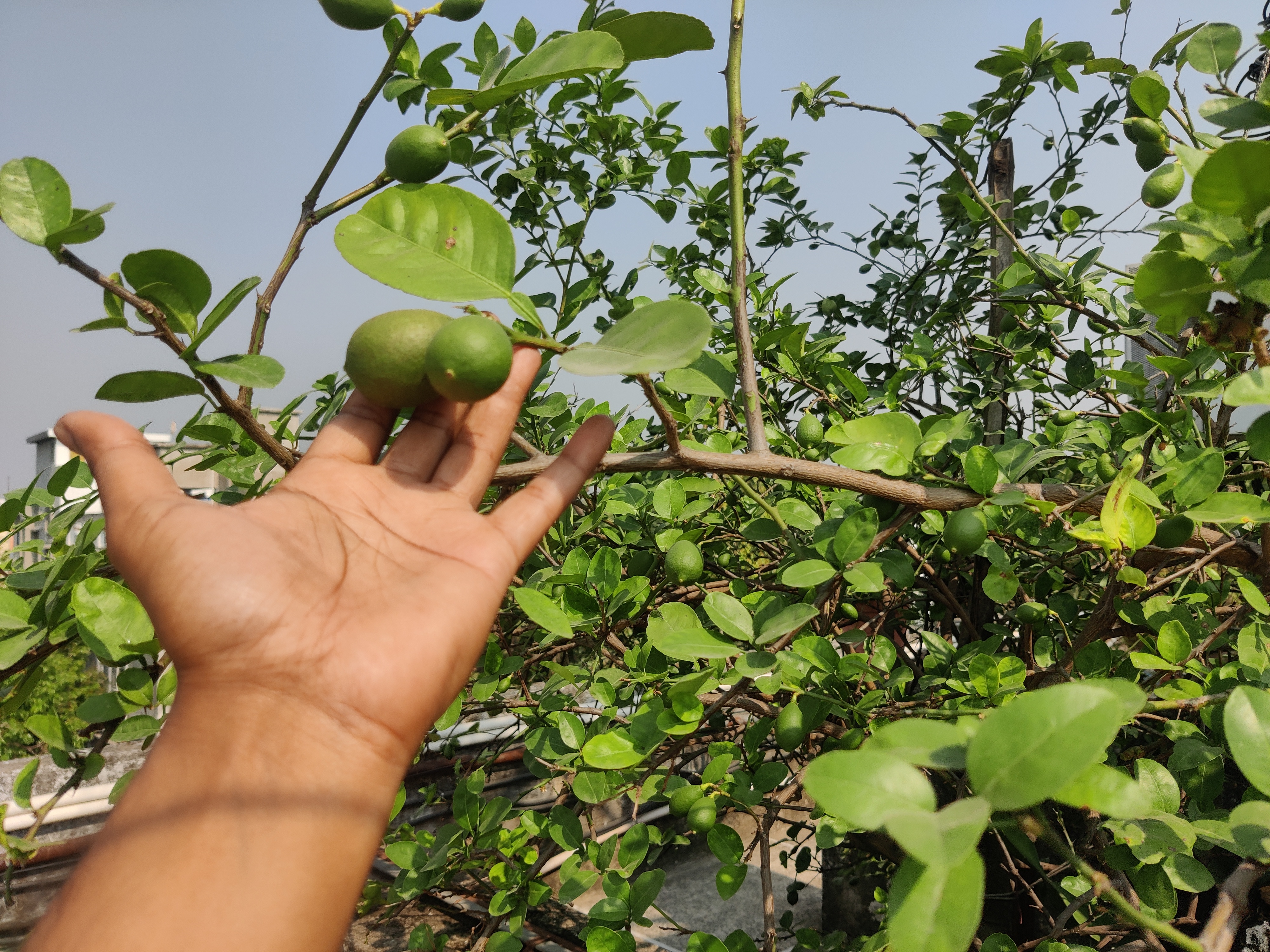 যাইহোক ছাদে গিয়ে এতো ধরনের ছবি তুলতে তুলতে বেশ দেরি হচ্ছিলো, তাই শুভ ও ছাদে গিয়েছিলো। ব্যাস ওকে পেয়েই আমি গাছে হয়ে থাকা কয়েকটা লেবুর ছবি তুলে দিতে বললাম। আসলে গাছগুলো বেশ লম্বা ছিলো আর গাছে কাঁটা থাকায় আমি ভালো ভাবে ছবি গুলো তুলতে পারছিলাম না।