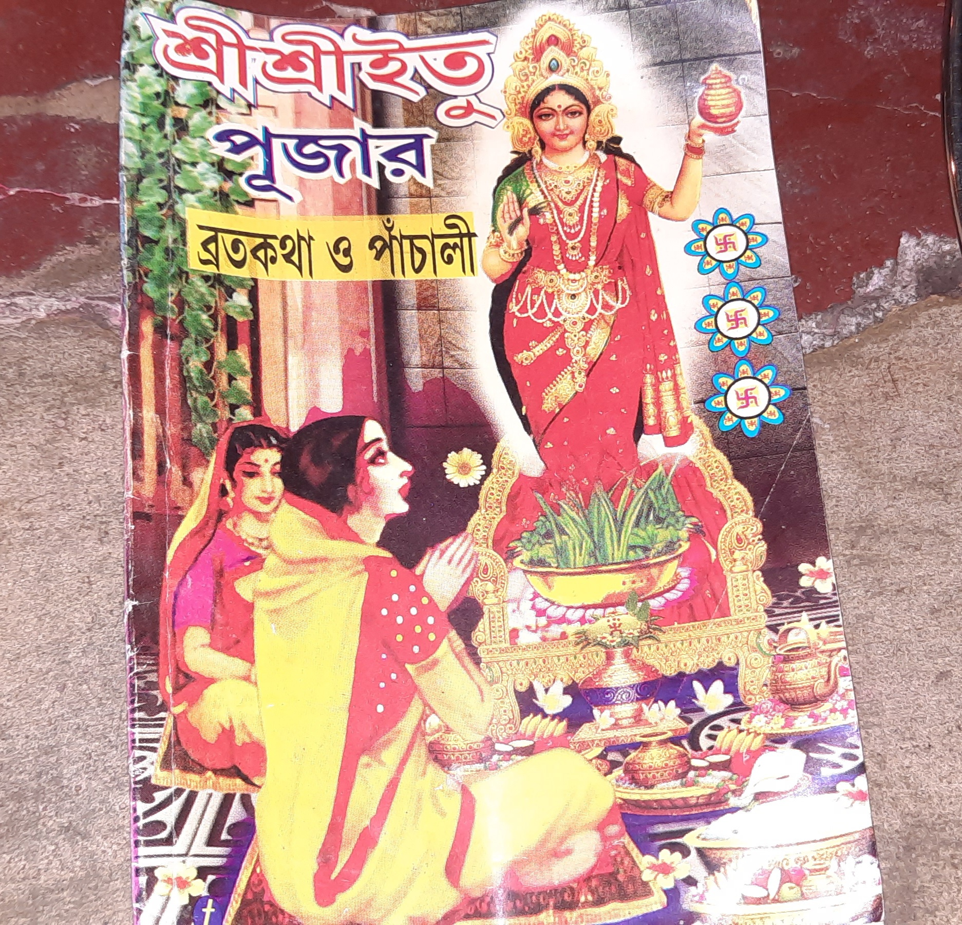 আমি এই গুলো সাজাতে সাজাতে মা স্নান করে চলে এলো।তারপরে দুজনে হাতে ফুল নিলাম।আমি ব্রতকথার বইটা ভালো করে পড়লাম,আর মা পাশে বসে শুনলো।