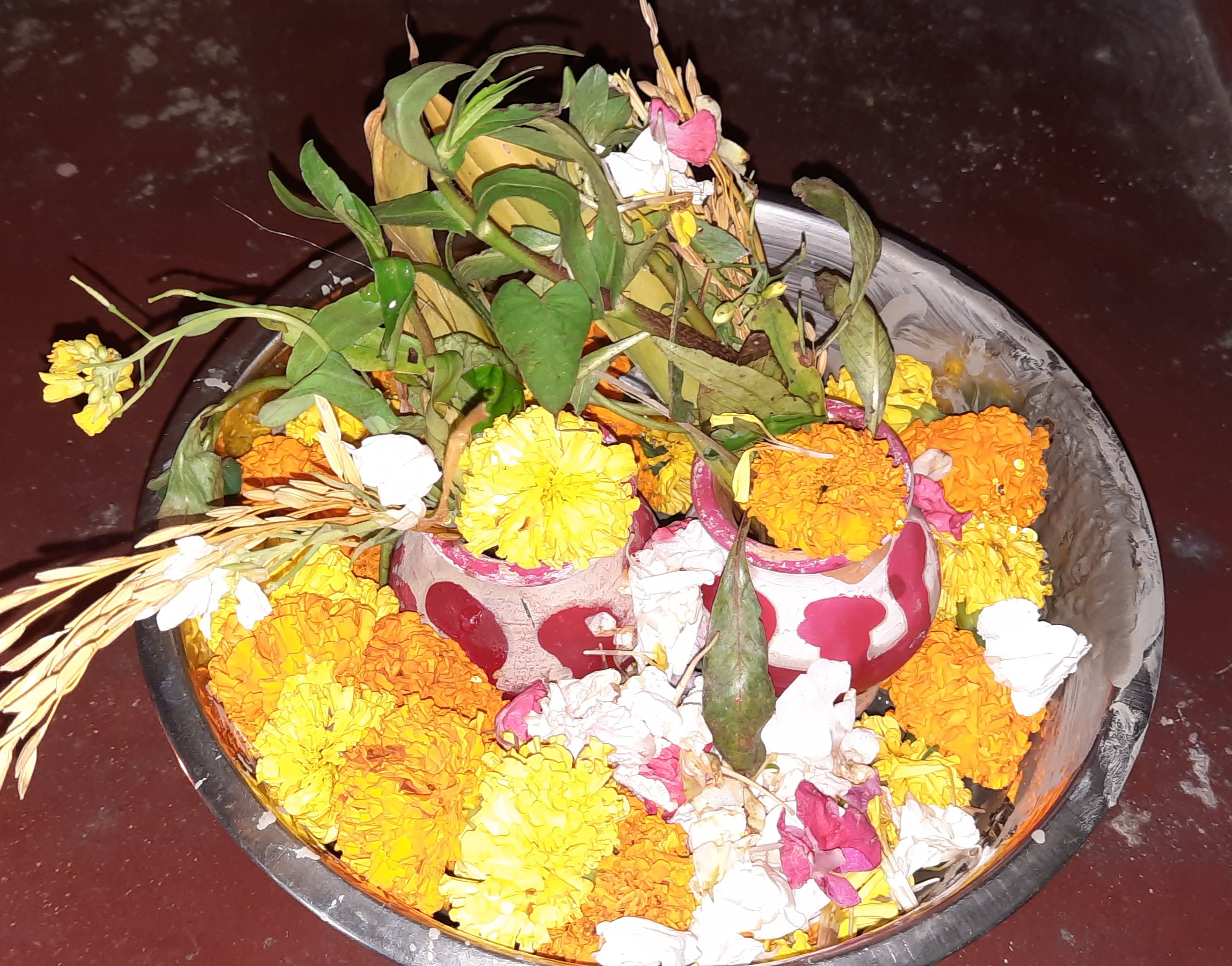 পুকুড়ে গিয়ে সব ফুল গুলো ফেলে,ঘটটা ডুবিয়ে জল নিয়ে বাড়িতে চলে এলাম।ওই জলটা ঘরে একটু ছড়িয়ে দিলাম।তারপরে চা খেয়ে বেড়িয়ে আসলাম।