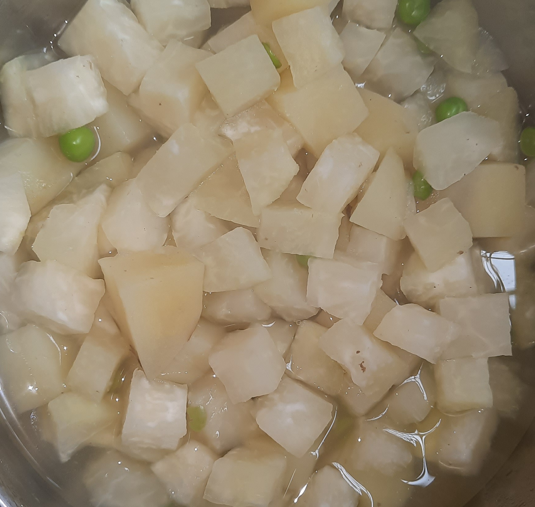 ১১)তারপরে সবজি গুলো সেদ্ধ হয়ে গেলে নামিয়ে নিলাম।