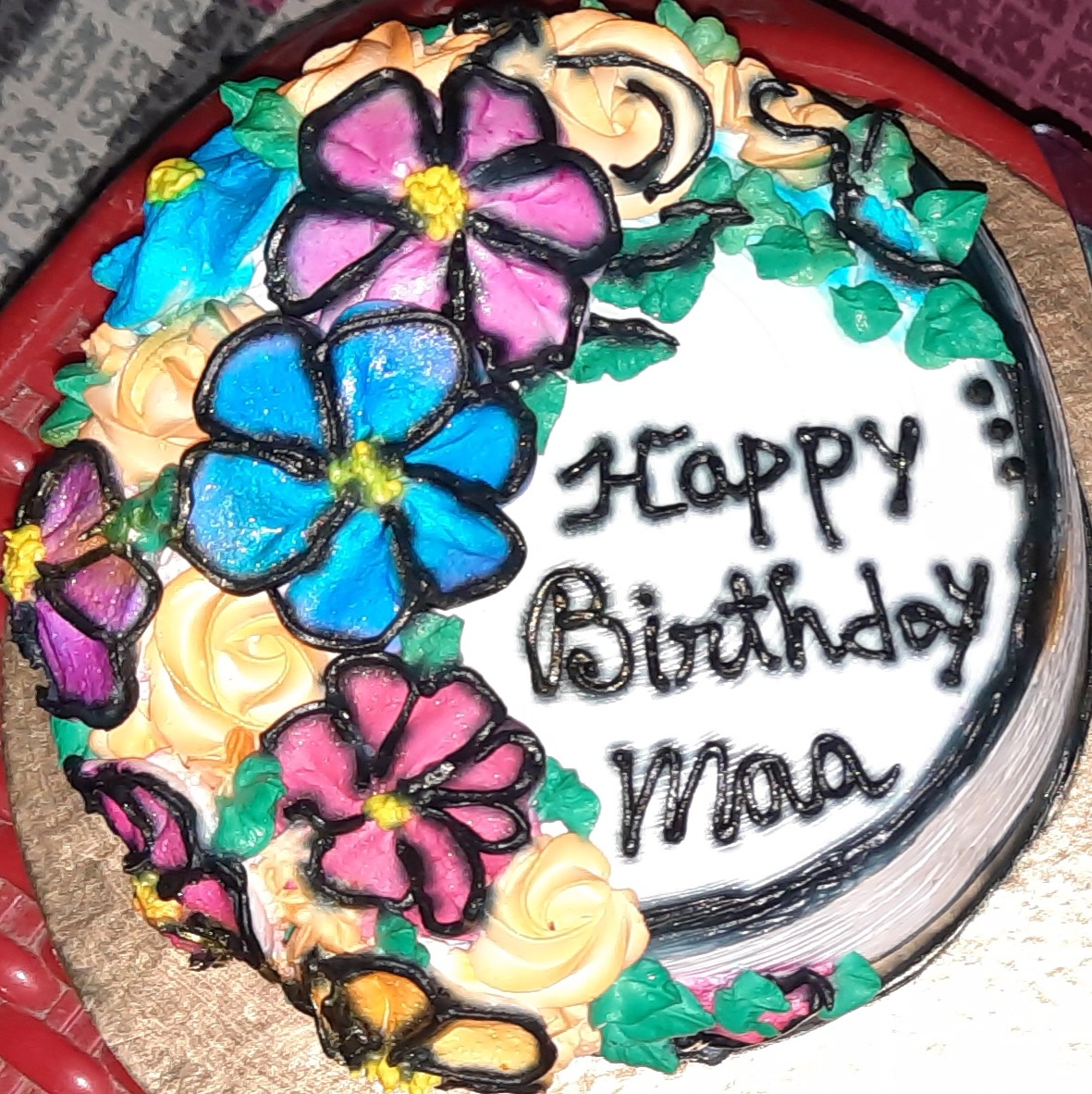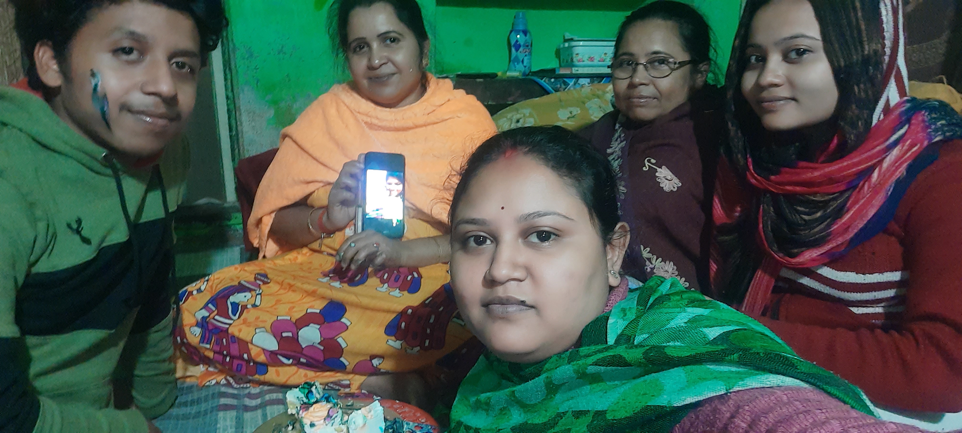 আমরা সবাই মিলে একটু কেক মাখা-মাখি করলাম।তারপরে ছবি তুললাম।তারপরে কেক কেটে মাসি সবাইকে দিলো।