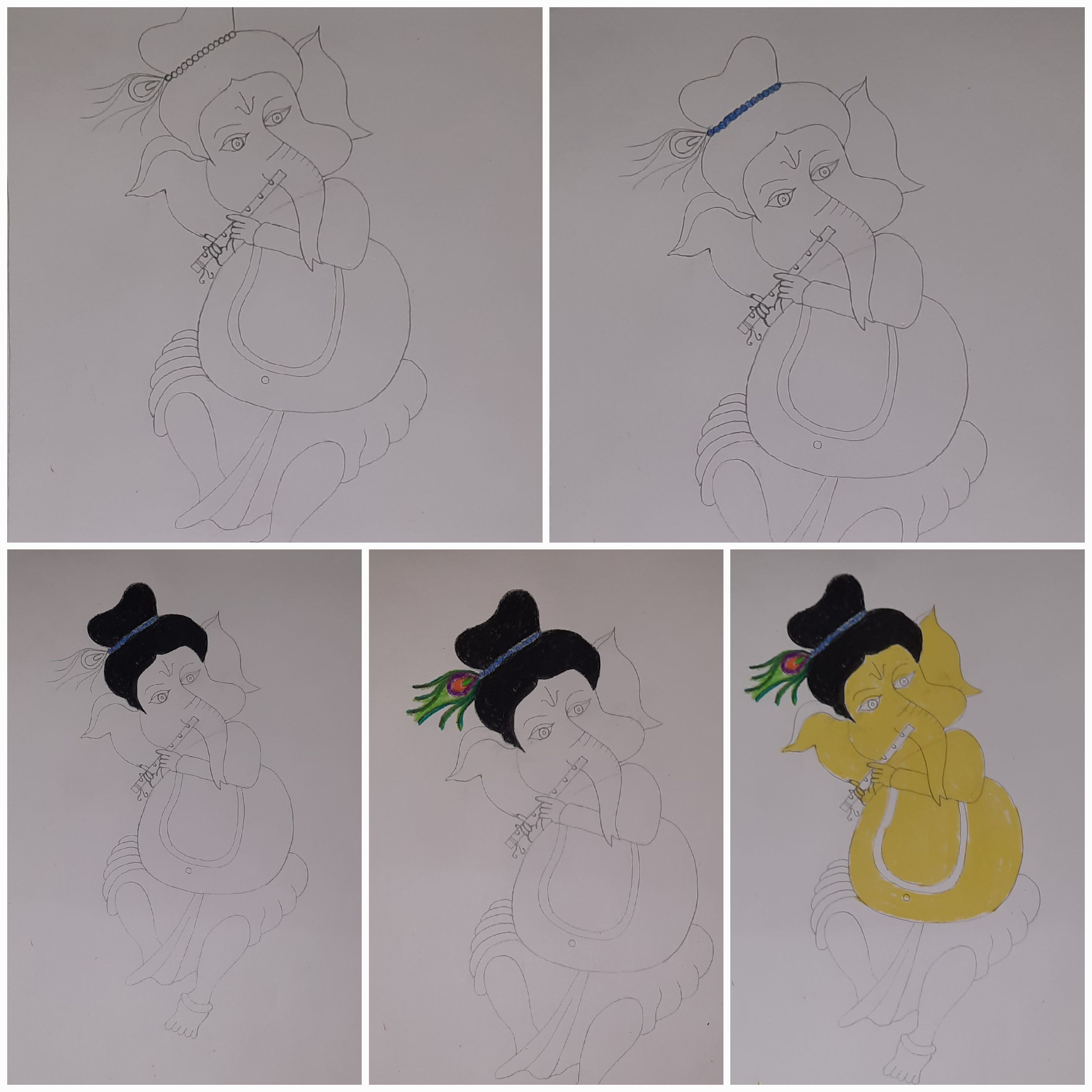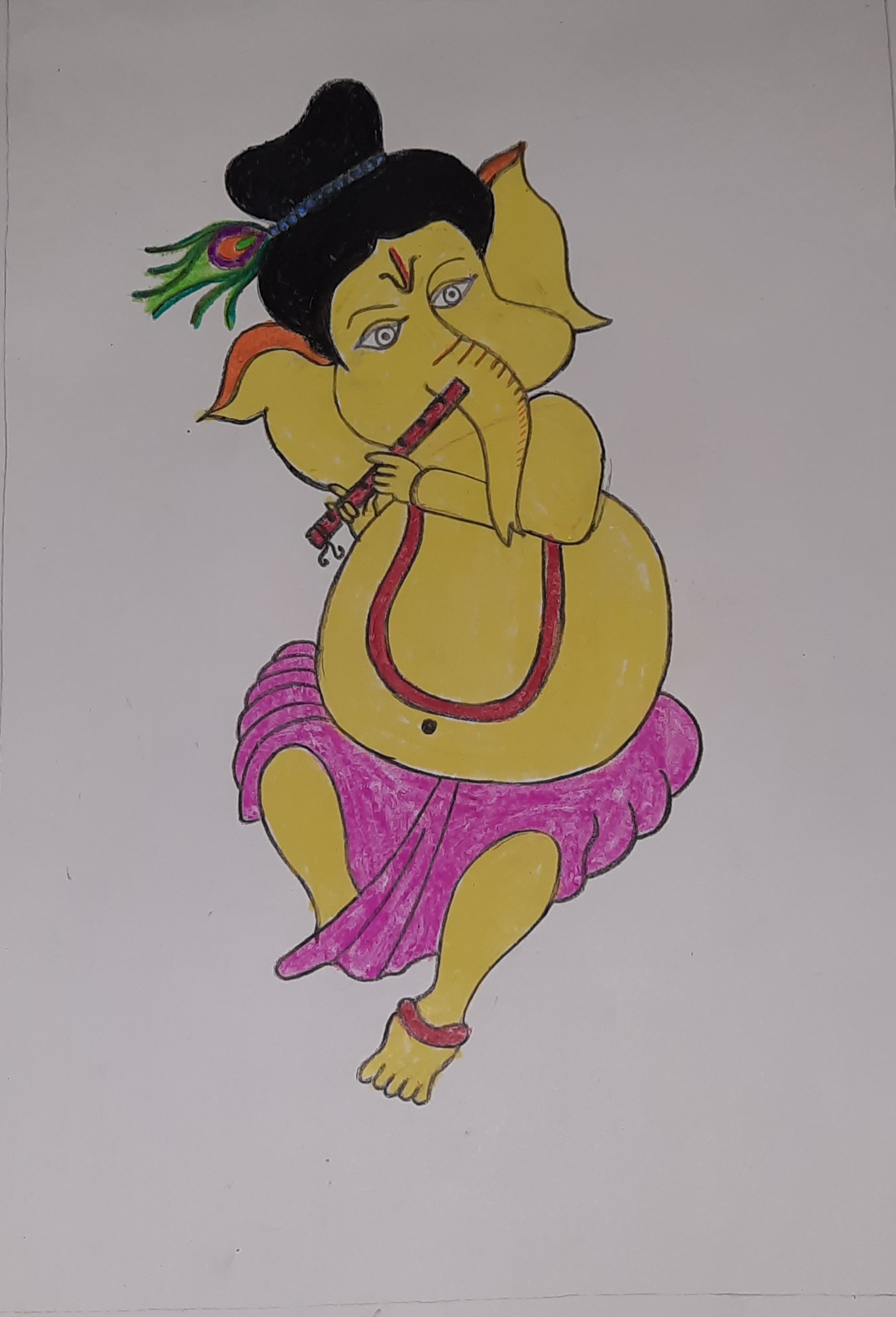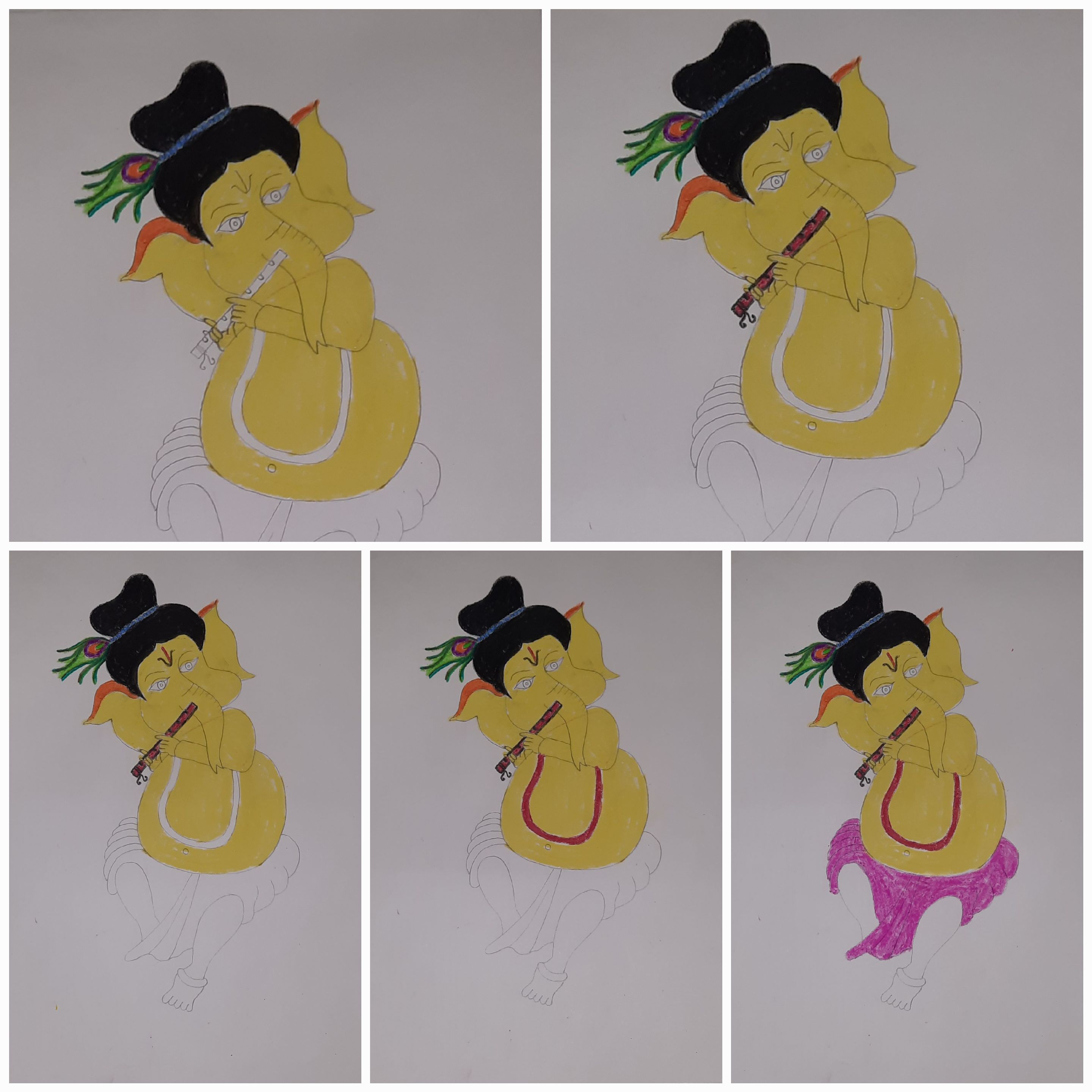 ৩০)তারপরে গণেশের মুখ,কান,পেট,আঙুল হলুদ রং করলাম।