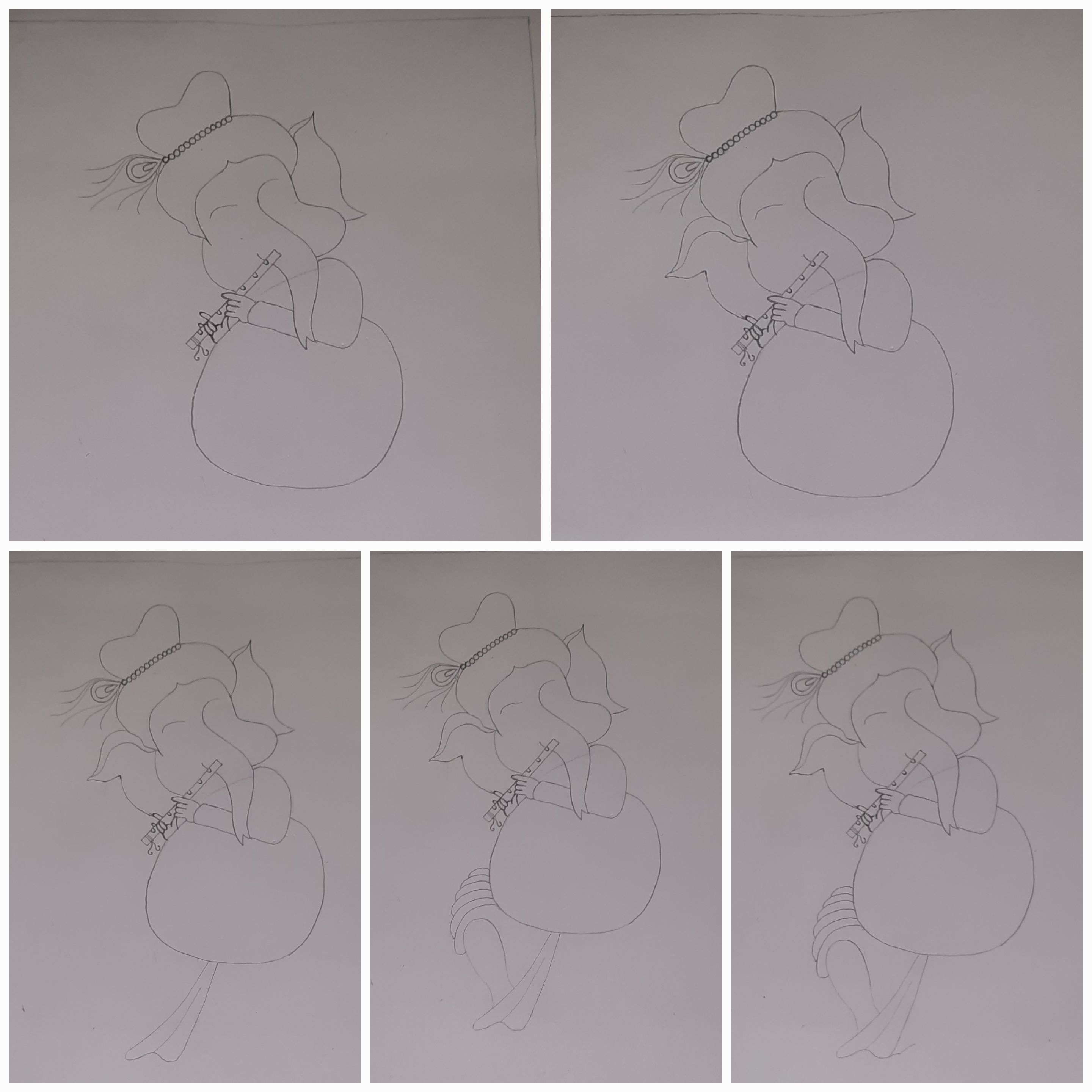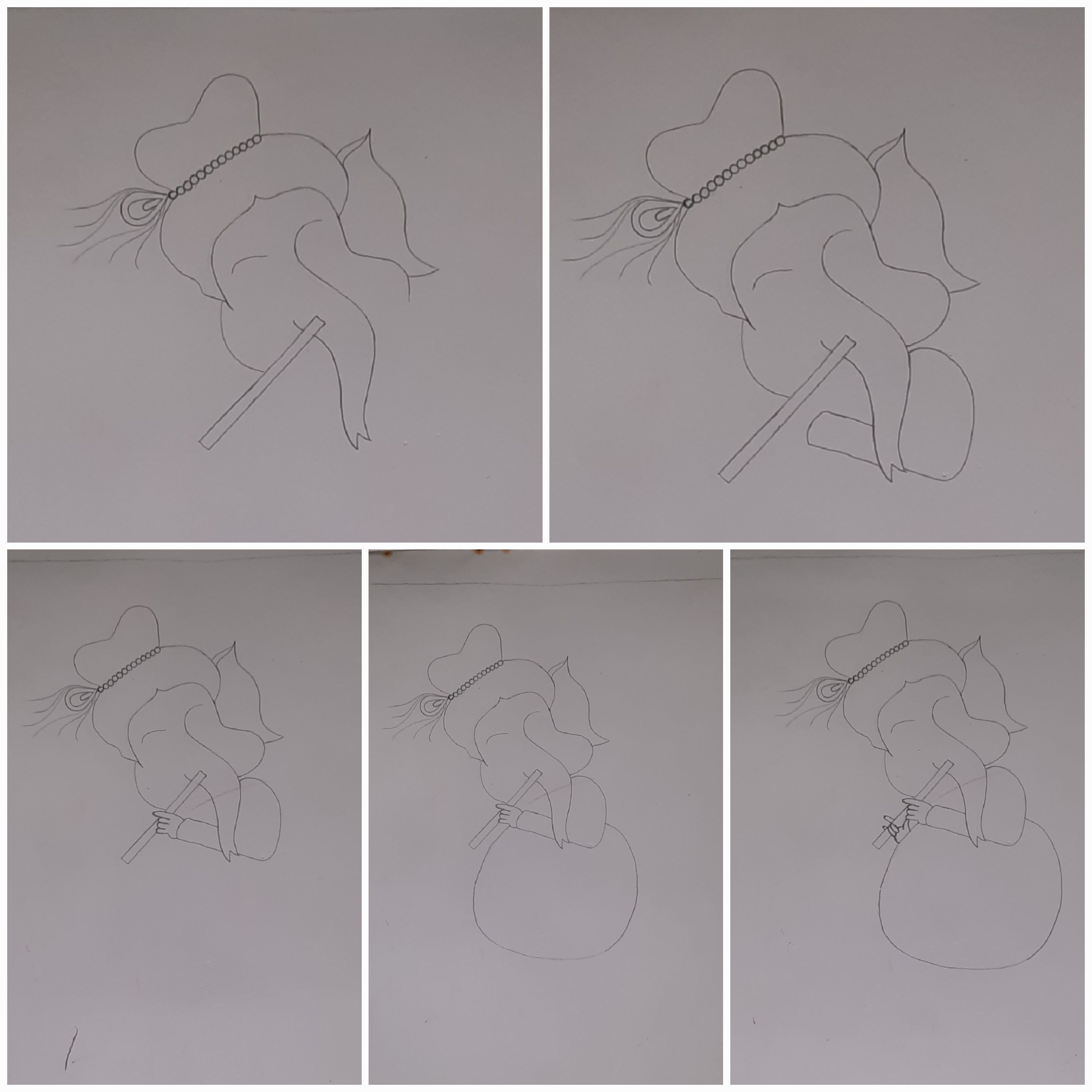 ১৯)তারপরে ওই দাগটা থেকে একটু ফুলিয়ে একটা পা করে তার ওপরে গোল করে কতোগুলো দাগ টেনে ধুতি করলাম।