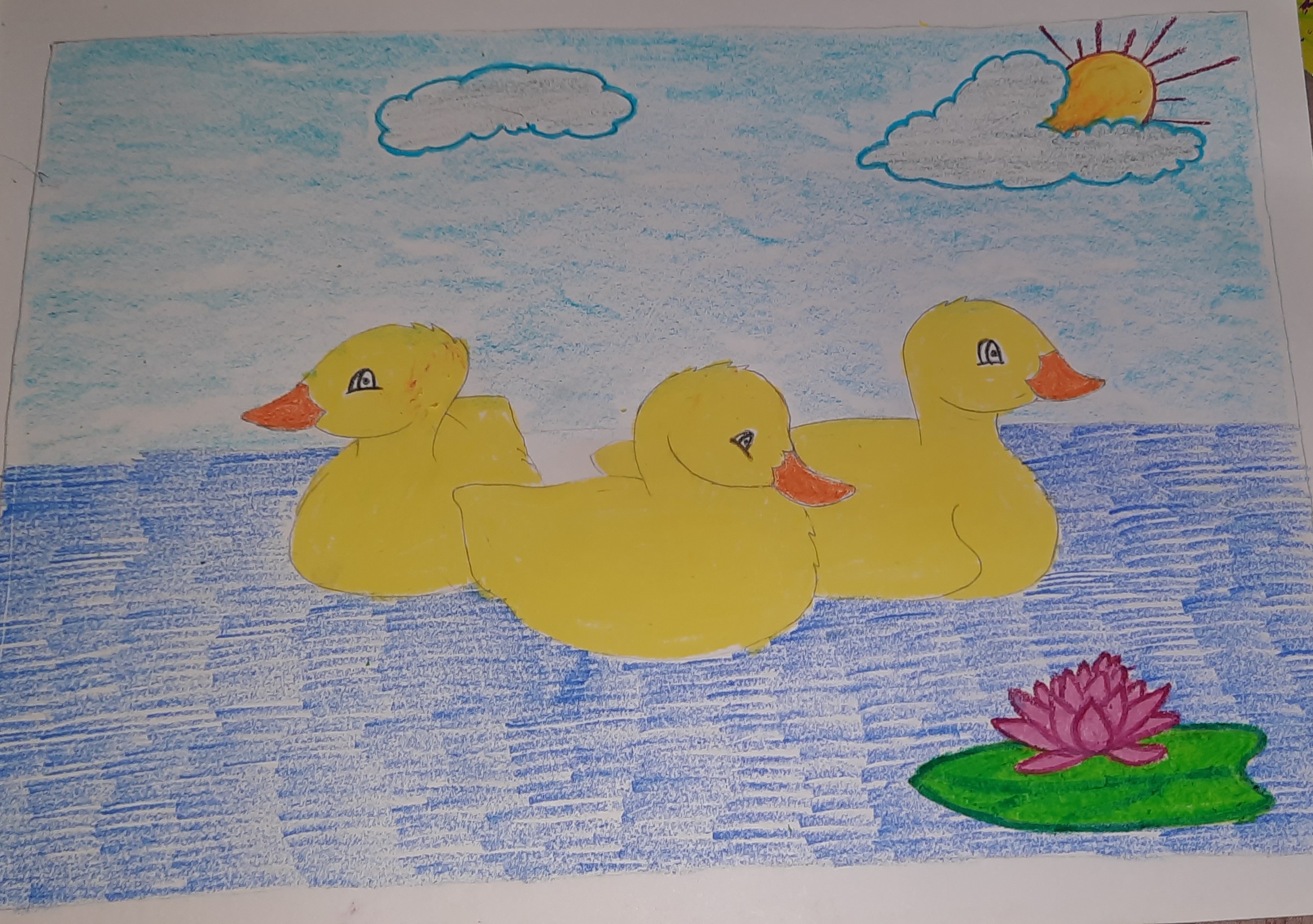 আমি আপনাদের কাছে বিভিন্ন ধরনের দৃশ্য একেছি আজ আঁকলাম জলে হাঁসের বাচ্চাগুলো ভেসে বেড়াচ্ছে।